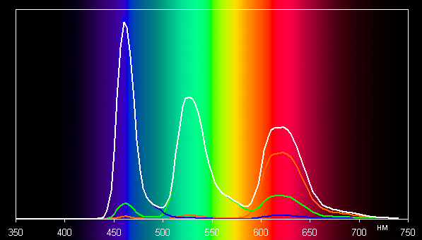 Компоненты цветов подмешиваются друг к другу, что и сужает цветовой охват, но в случае профиля Естественные цвета подмешивание больше: