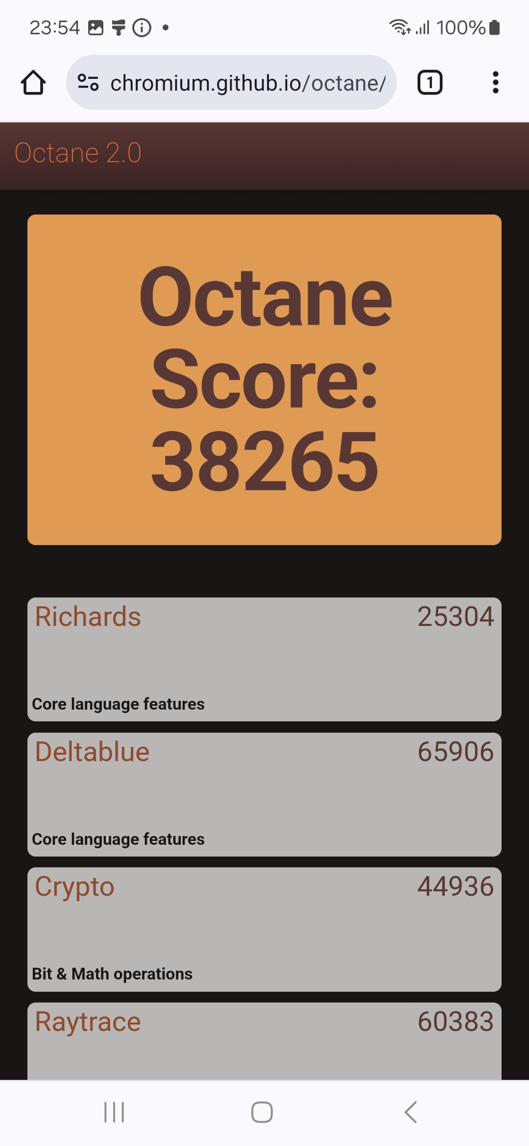 | Google Octane 2 (больше — лучше) | 38265 | 34829 | 7118 | 24923 | 39276 |