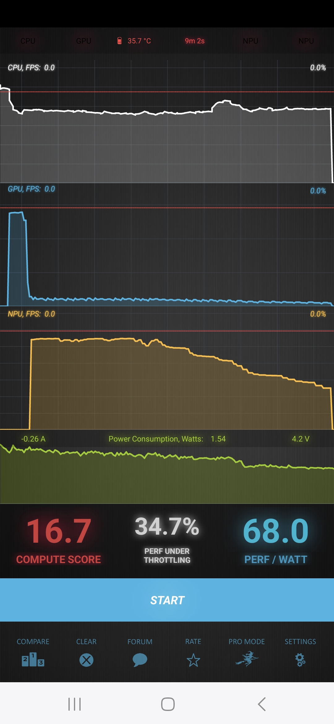 Тест на снижение производительности при нагреве мы проводим с помощью программы Burnout Benchmark, которая позволяет нагружать CPU, GPU и NPU: