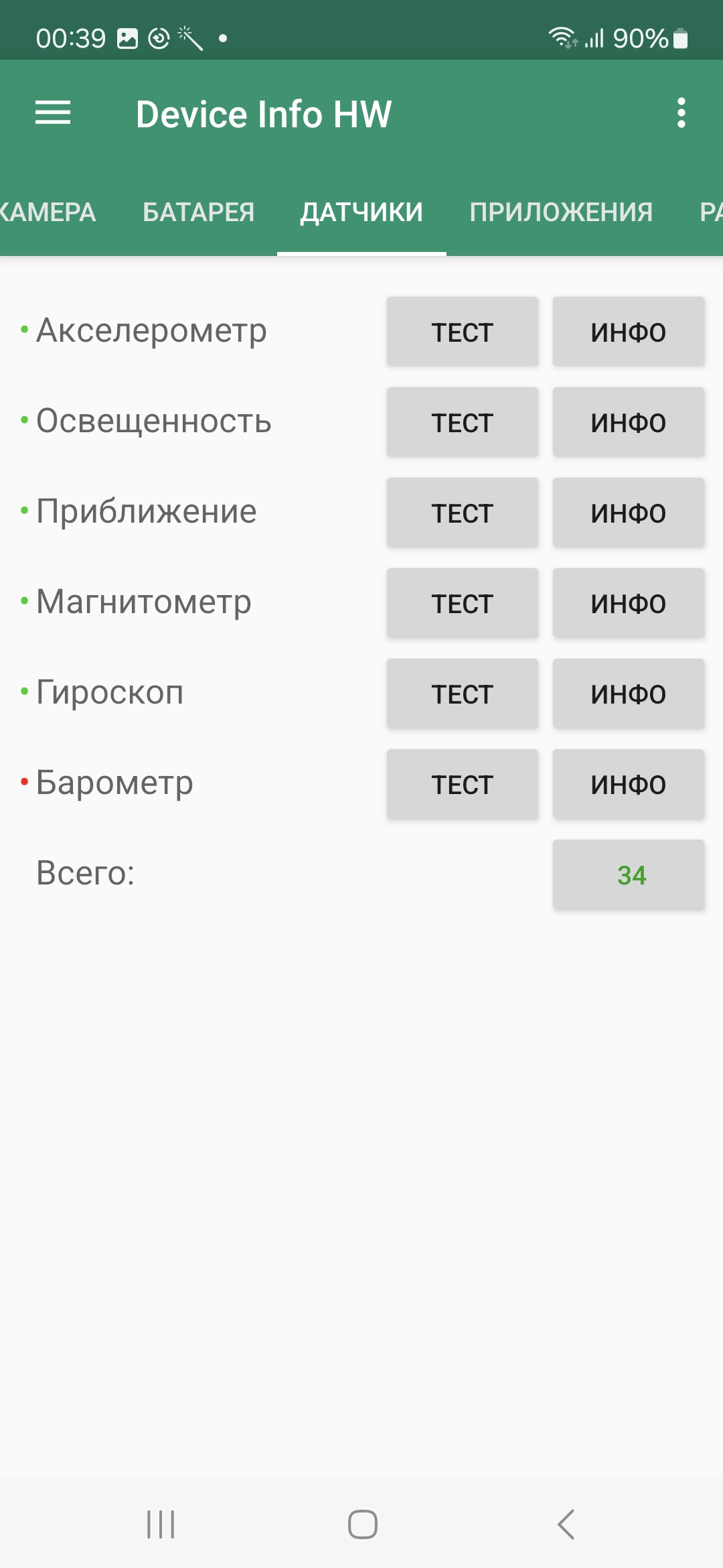 - Датчики приближения и освещения, магнитного поля, акселерометр, гироскоп