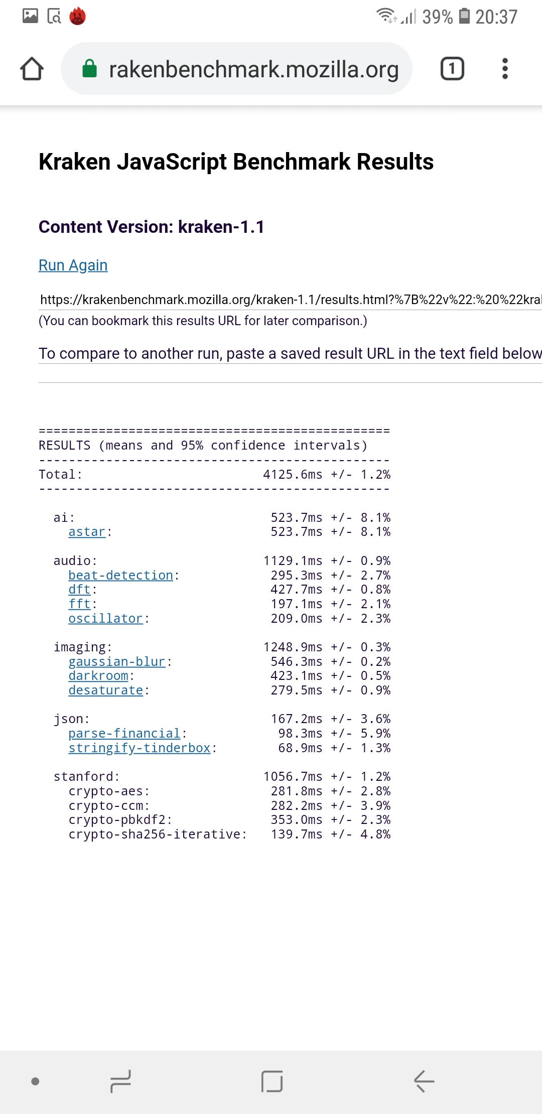 | Mozilla Kraken (мс, меньше — лучше) | 4126 | 3804 | 9781 | 4463 | 9666 |