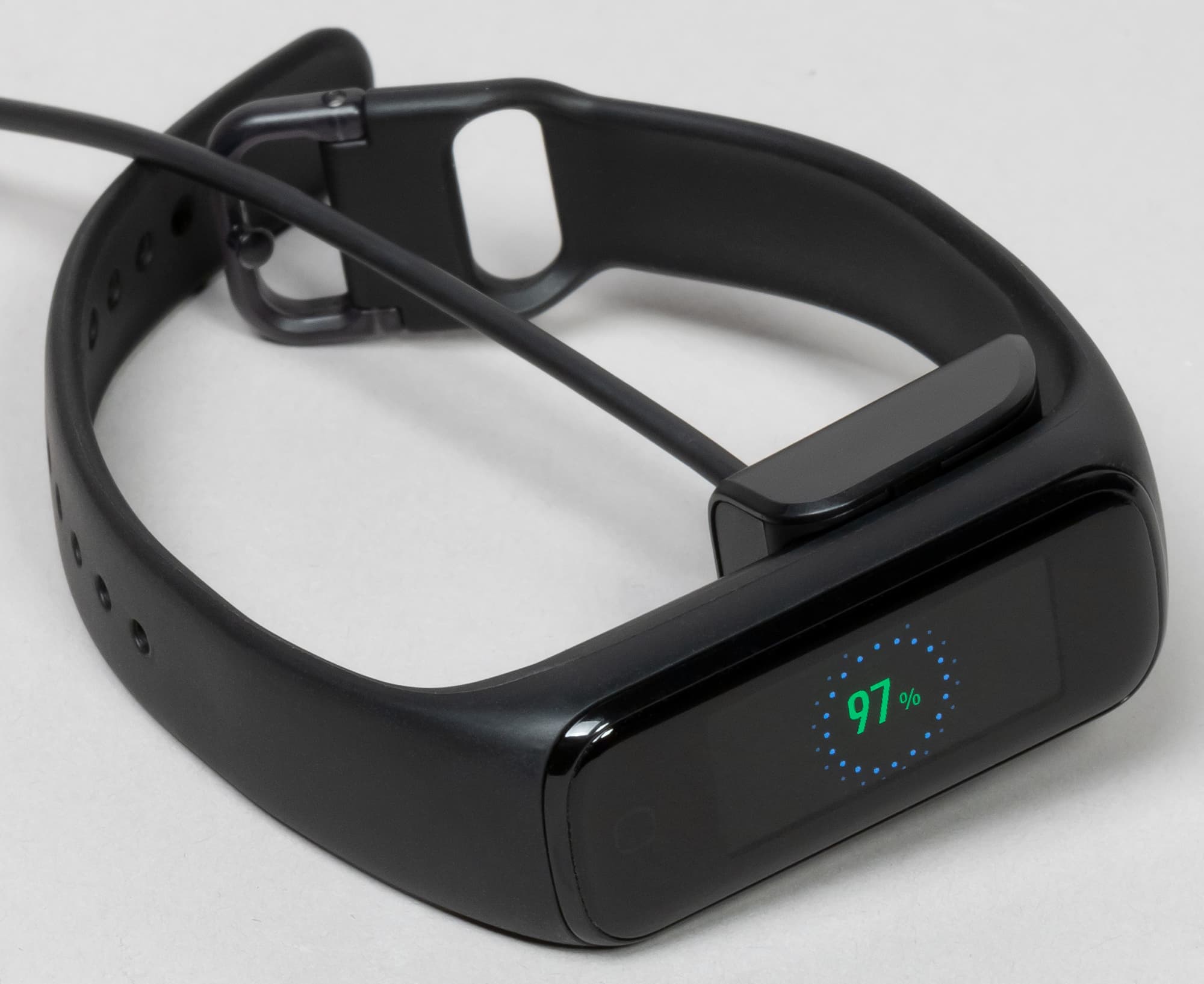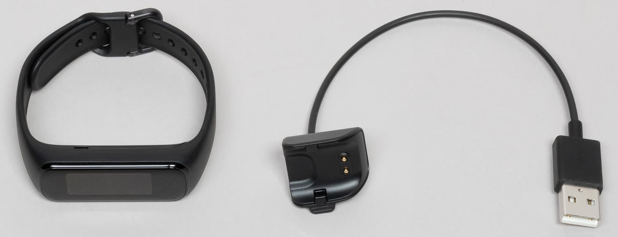 Заметим, что по нынешним временам подобная зарядка с механическим креплением выглядит, конечно, немного устаревшей. Более шести лет назад мы тестировали первый Samsung Gear Fit, у которого был очень похожий зарядный инструмент, и с тех про производитель так и не перешел на магнитное крепление или, тем более, какой-то беспроводной вариант.