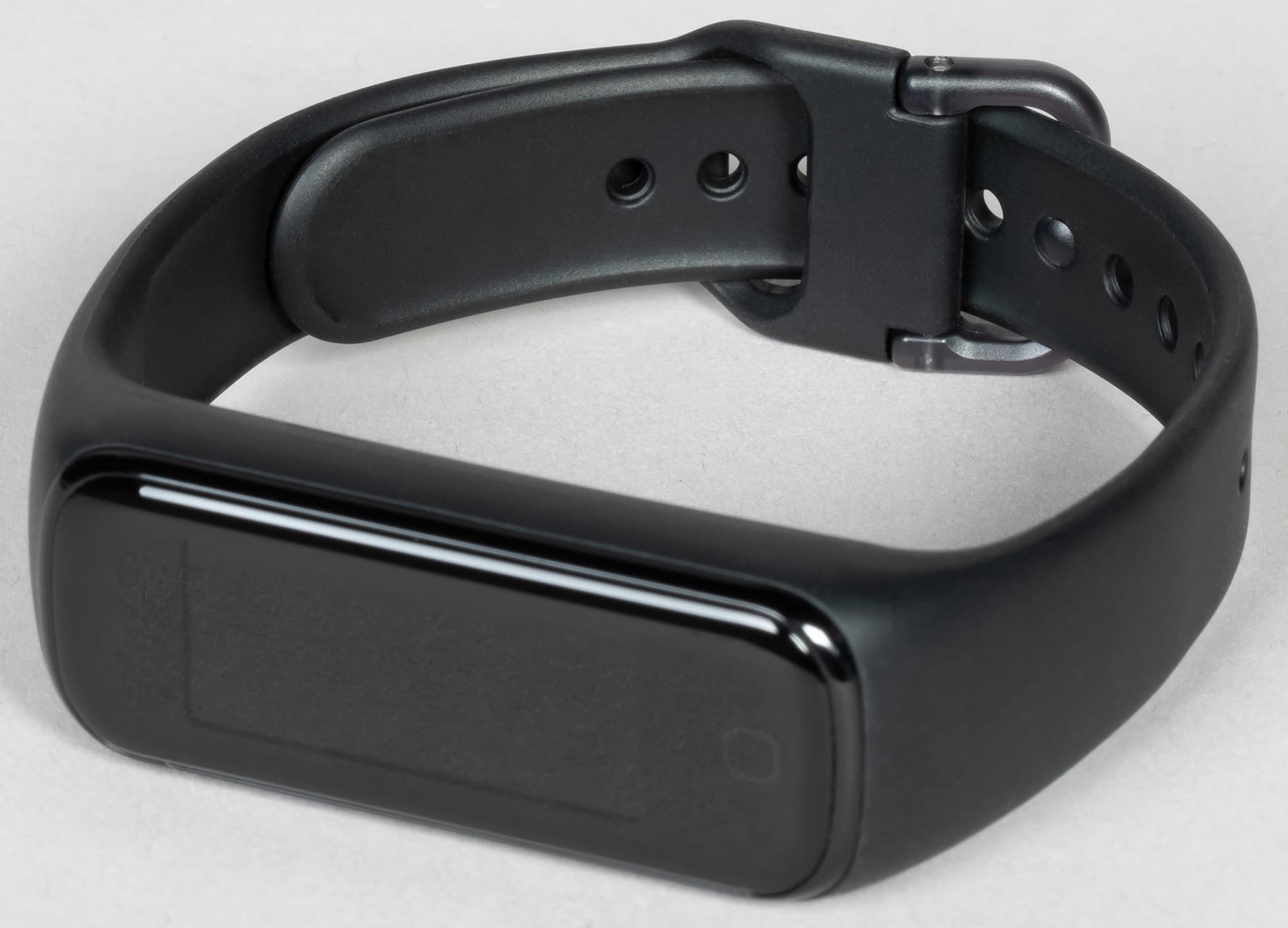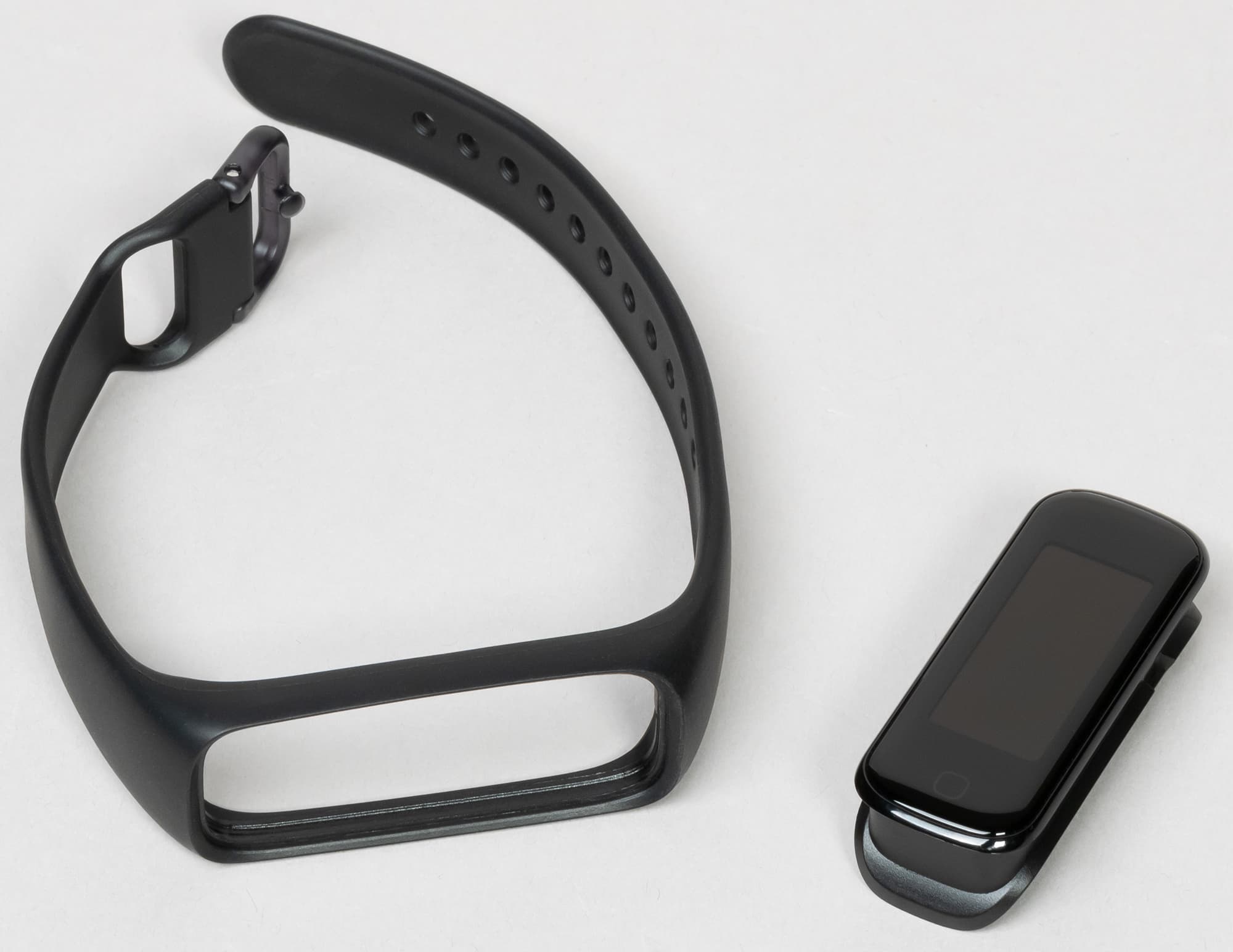 В обзоре Galaxy Fit e мы отмечали, что застежка подобного типа требует привыкания и не то чтобы очень удобна, но, в принципе, совсем неудобной ее тоже не назовешь. Нормально, в общем.
