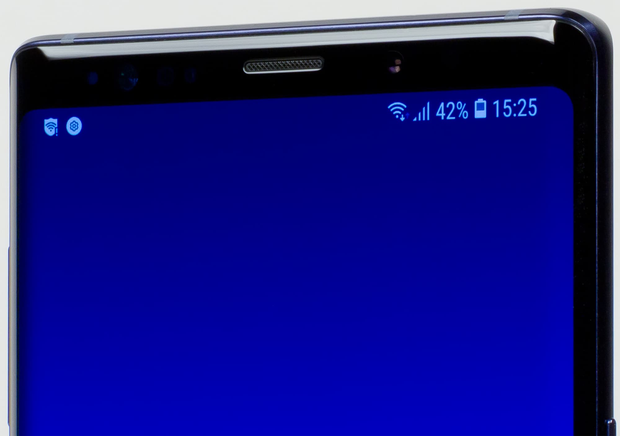 Цветопередача хорошая, цвета в меру насыщенные, цветовой баланс у экранов немного различается. Напомним, что фотография не может служить надежным источником сведений о качестве цветопередачи и приводится только для условной наглядной иллюстрации. В частности, выраженный красноватый оттенок белого и серого полей, присутствующий на фотографиях экрана Samsung Galaxy Note 9, при перпендикулярном взгляде визуально отсутствует, что подтверждается аппаратными тестами с помощью спектрофотометра. Причина в том, что спектральная чувствительность матрицы фотоаппарата неточно совпадает с этой характеристикой человеческого зрения. Заметим, что в данном случае картинка занимает в высоту (при ландшафтной ориентации экрана) всю доступную для вывода изображения область и заходит на загнутые края экрана, что приводит к легкому затемнению и искажению цвета. Также на свету эти области почти всегда бликуют, что еще больше мешает при просмотре изображений, выведенных на весь экран. И даже картинка фильмов с соотношением сторон 16:9 заходит на загибы, что мешает при просмотре кино.