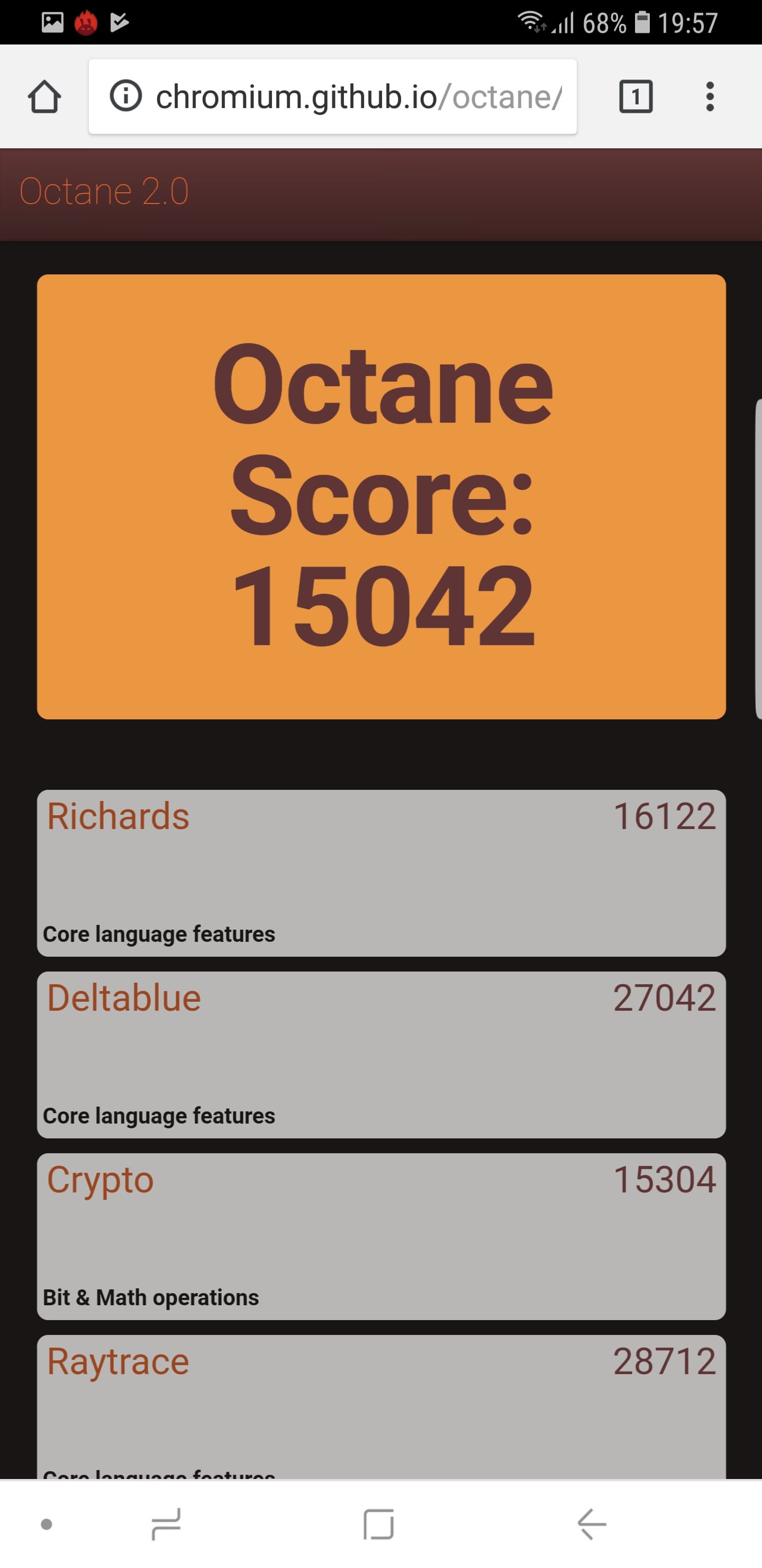 Что касается бенчмарков для оценки скорости движка javascript, то стоит всегда делать скидку на то, что в них результаты существенно зависят от браузера, в котором запускаются, так что сравнение может быть истинно корректным только на одинаковых ОС и браузерах, а такая возможность имеется при тестировании не всегда. В случае с ОС Android мы всегда стараемся использовать Google Chrome.