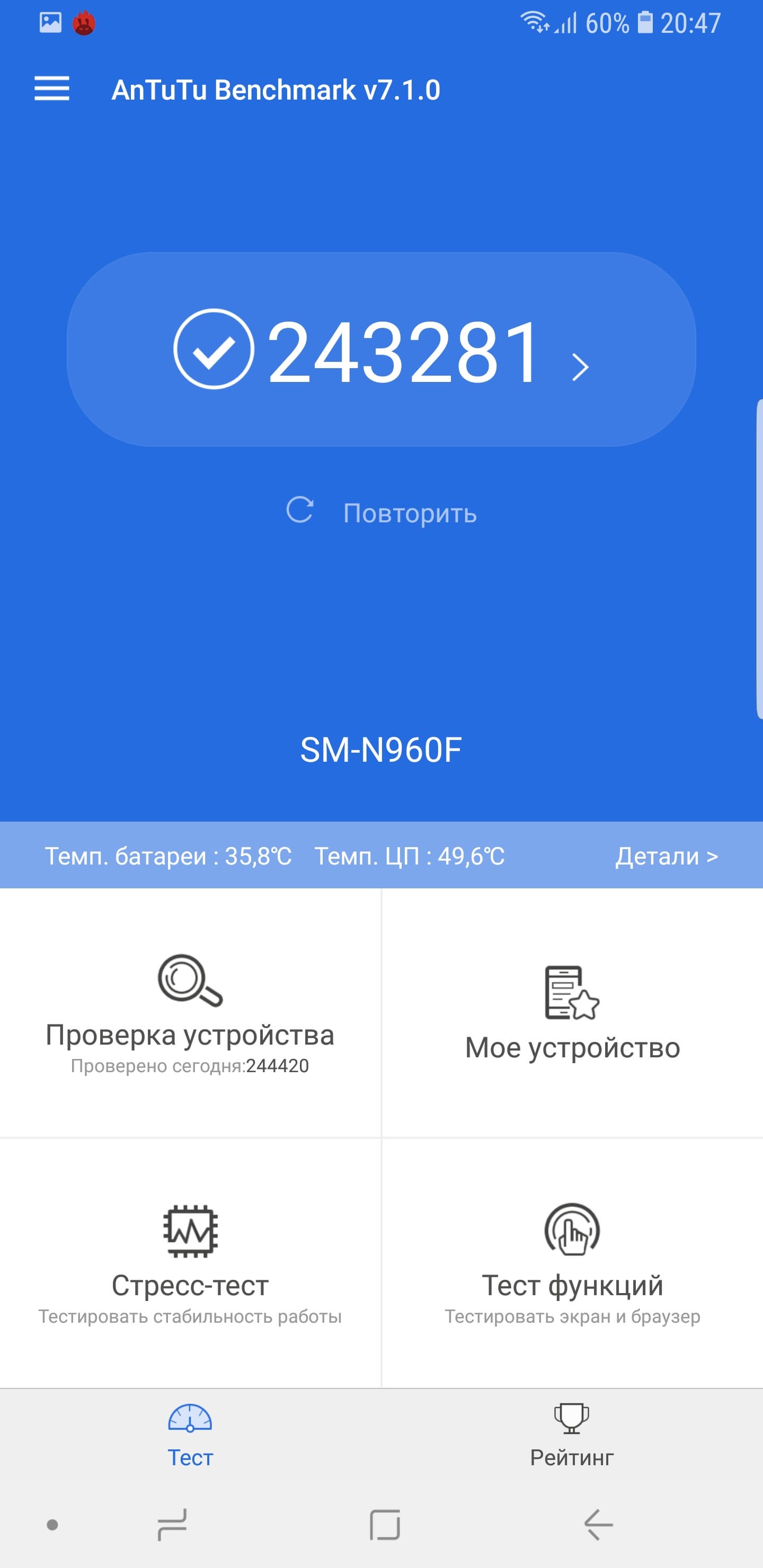 | AnTuTu (v7.x) (больше — лучше) | 243281 | 258572 | 209585 | 143077 |