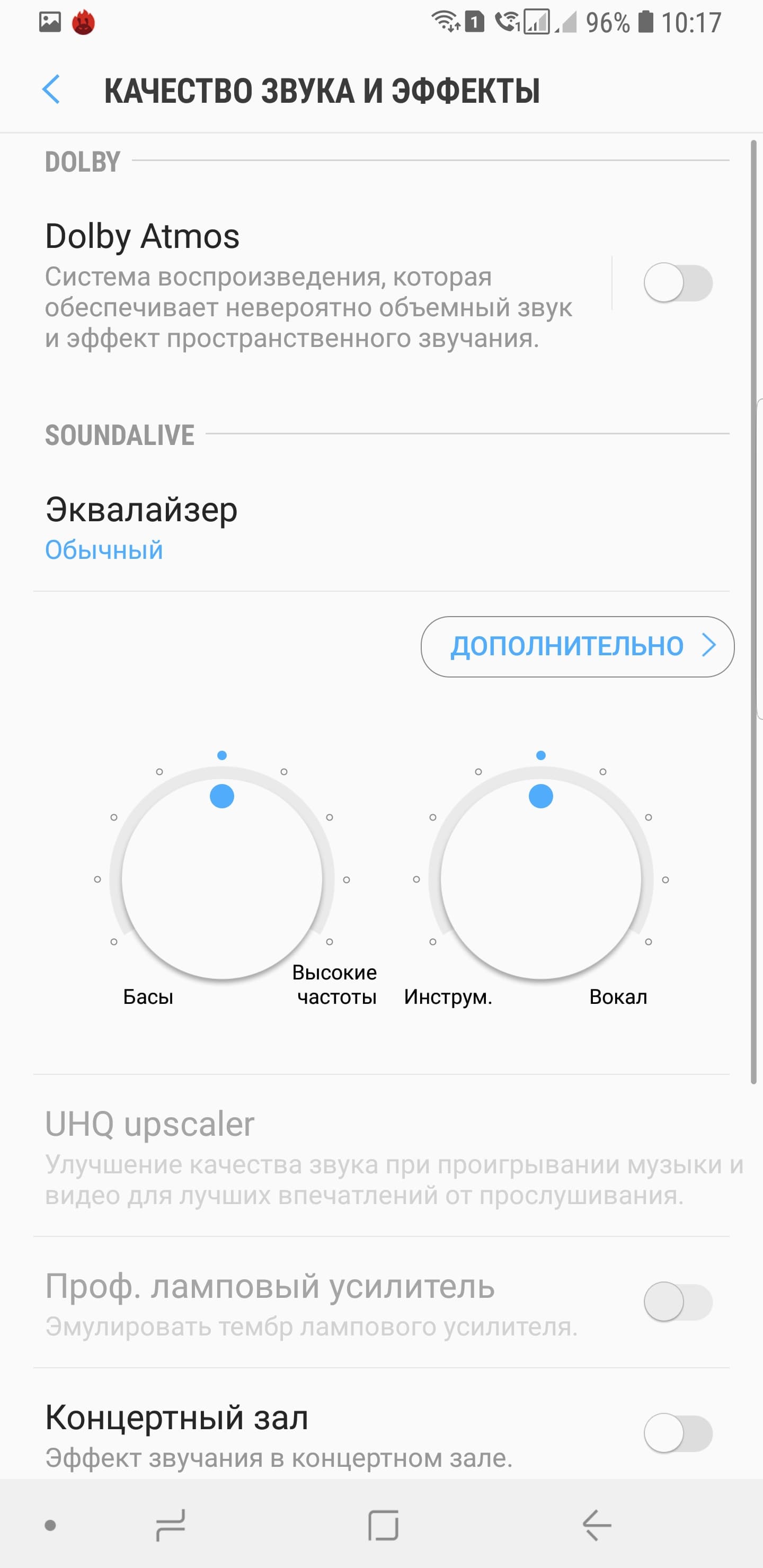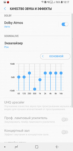 Для проигрывания музыки используется собственный проигрыватель, есть поддержка Dolby Atmos с массой настроек, десятиполосным эквалайзером. Звук качественный, громкий, чистый, и любой пользователь может подстроить его под себя с помощью службы Adapt Sound. Динамики работают в стереопаре, они громкие и выдают чистый, яркий и вполне качественный звук. В комплекте со смартфоном идут фирменные качественные наушники AKG.