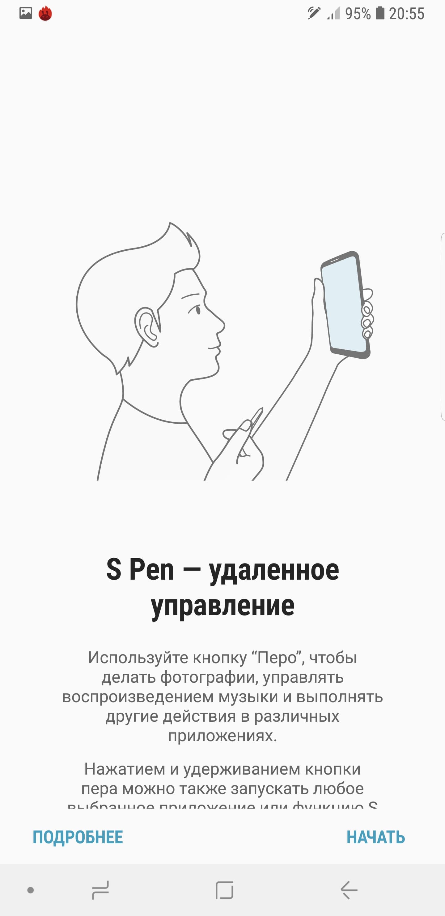Одной из уникальных особенностей серии Galaxy Note всегда являлась поддержка работы с собственным электронным пером S Pen. Теперь его можно использовать не только для создания заметок в блокноте или подписей под рисунками от руки — перо способно работать в качестве пульта дистанционного управления некоторыми функциями смартфона. Например, больше не нужно выставлять таймер, делать селфи с вытянутой руки и стараться уместить всех ваших друзей на групповом снимке — спуск затвора можно осуществить на расстоянии с помощью S Pen. Удерживание кнопки на пере запускает камеру, а двойное нажатие переключает съемку между фронтальной и основной камерой. Также с помощью пера есть возможность переключать кадры в режиме показа презентации в PowerPoint, воспроизводить видео и ставить просмотр на паузу — и все это находясь на расстоянии 10 метров от своего мобильного аппарата.