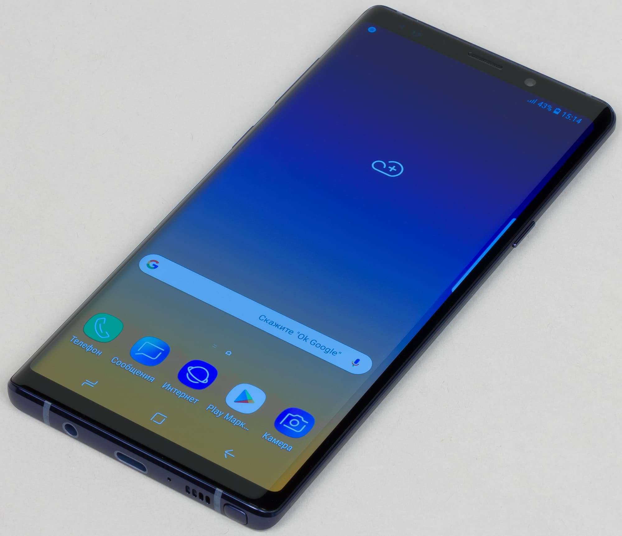 Samsung Galaxy Note 9 представлен в продаже в трех цветах: черном, синем и медном, У всех у них цвет передней панели — черный.