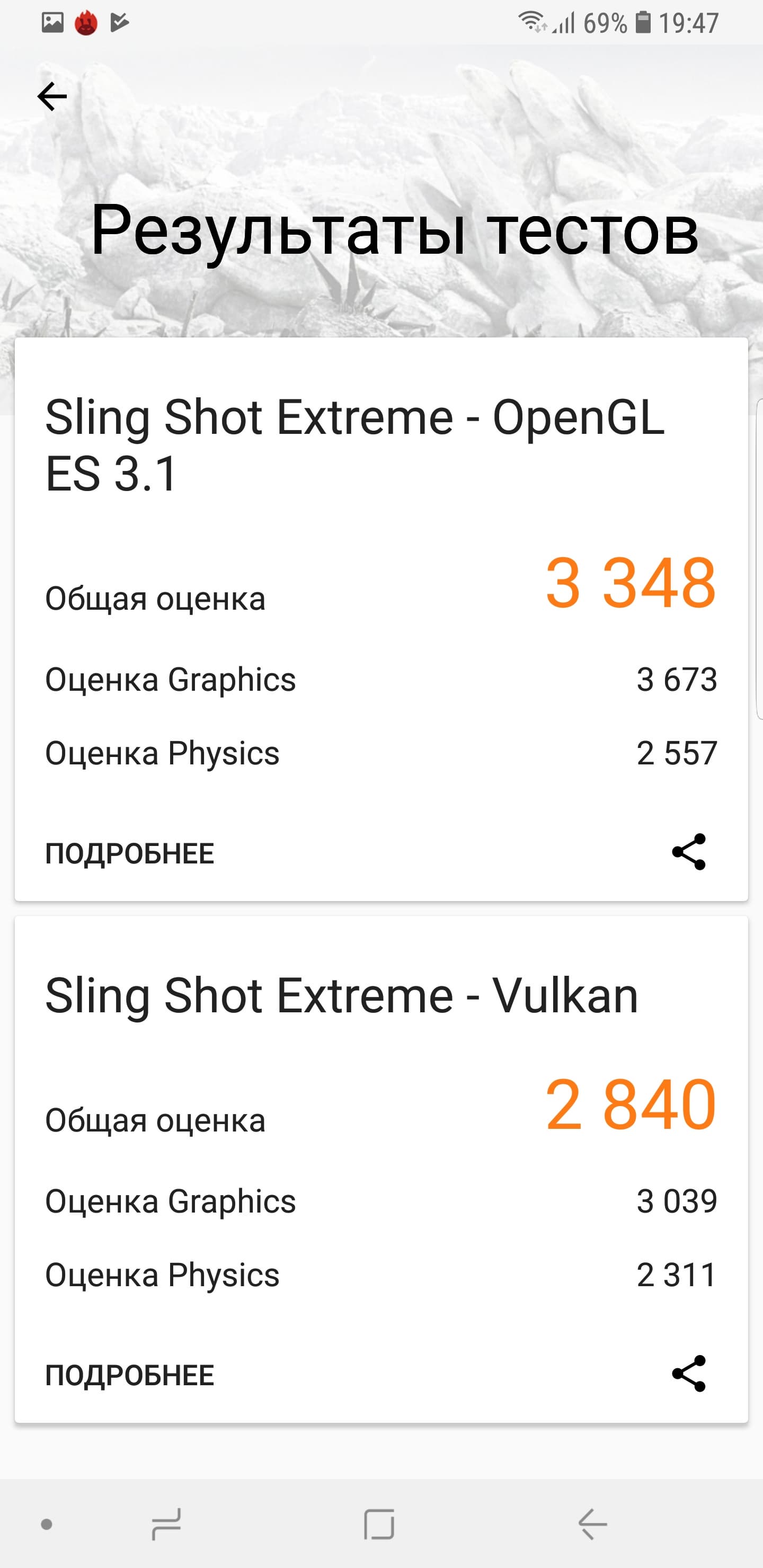 | 3DMark Sling Shot Ex Vulkan (больше — лучше) | 2840 | 2167 | 2918 | 1217 |