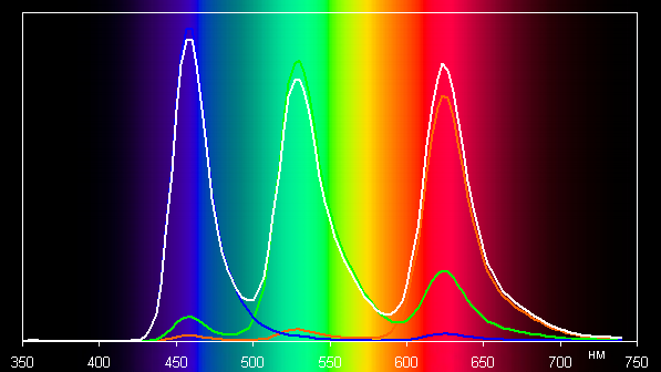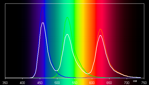 Без коррекции (профиль Адаптивный дисплей) спектры компонент очень хорошо разделены: