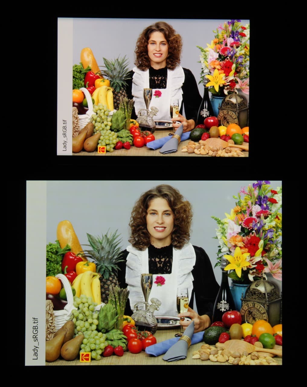 Отметим хорошую равномерность яркости и цветового тона белого поля (за исключением едва видимого затемнения и изменения оттенка к загнутым краям).