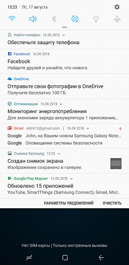 Также можно отметить возможность разблокировки Galaxy Note 9 при помощи интеллектуальной идентификации с распознаванием лица и радужной оболочки глаза владельца независимо от условий освещенности. И это действительно работает, разблокировка в любых условиях освещения происходит без сбоев. Разумеется, можно разблокировать смартфон при помощи отпечатка пальца, пароля, PIN-кода и других привычных способов.