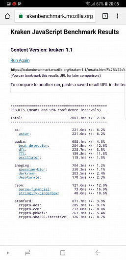 | Mozilla Kraken (мс, меньше — лучше) | 2687 | 3574 | 3841 | 5106 |
