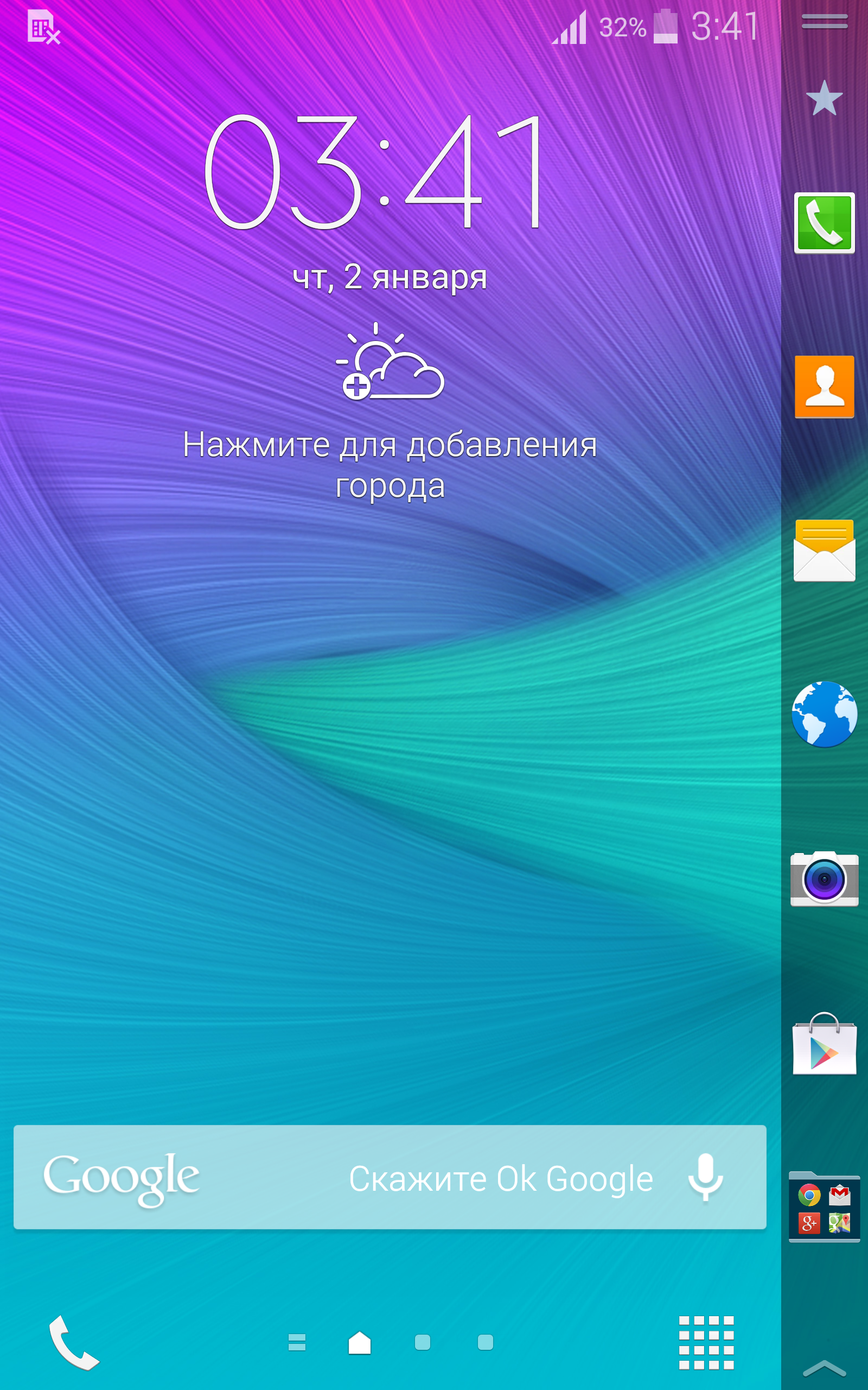 На левой грани разместилась только качелька регулировки громкости. Она очень длинная, выполнена из металла (как и кнопка питания) и нажимаеся с усилием и хорошо слышным звуком. Ну а правая грань, как мы уже писали, целиком занята загибающимся экраном. Если положить смартфон экраном вниз на стол, содержимое правой грани почти не будет видно. Но если держать смартфон гранью к себе, то все видно достаточно хорошо. В руке Note Edge лежит удобно, прочность хвата обеспечивает металлическая окантовка трех граней.