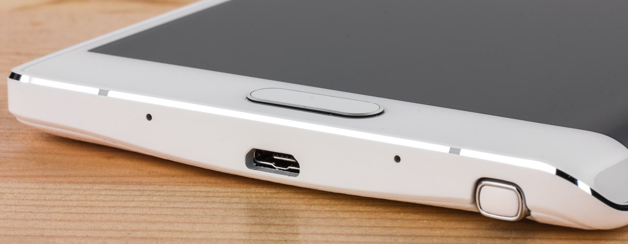 На нижней грани — уже упомянутое нами отверстие для стилуса, два микрофона и разъем Micro-USB, через который смартфон заряжается и подключается к ПК и устройствам отображения (телевизорам, мониторам). Поддержка USB OTG (подключение внешних устройств, включая накопители) тоже имеется.