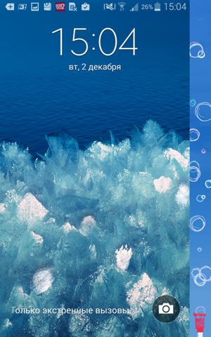 Снизу на задней стороне выглядывает стилус — как и все аппараты серии Note, Galaxy Note Edge оснащен стилусом и поддержкой перьевого ввода. Причем на прикосновения стилуса реагирует не только основная, но и изогнутая зона экрана. В качестве особенности, не очень нам понравившейся, отметим тот факт, что экран реагирует (то есть на нем появляется курсор в виде крошечного кружочка), даже когда стилус еще довольно высоко над ним.