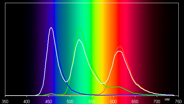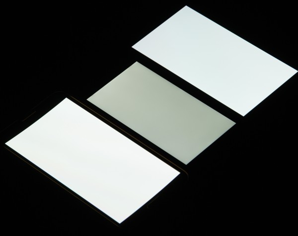 Видно, что экраны имеют хорошую равномерность белого поля (к сожалению, на OLED проявился муар, что несколько осложняет визуальную оценку), и его цвет близок к белому (баланс белого при съемке был принудительно установлен на стандартную температуру 6500 К, а яркость экранов приведена примерно к одному значению).