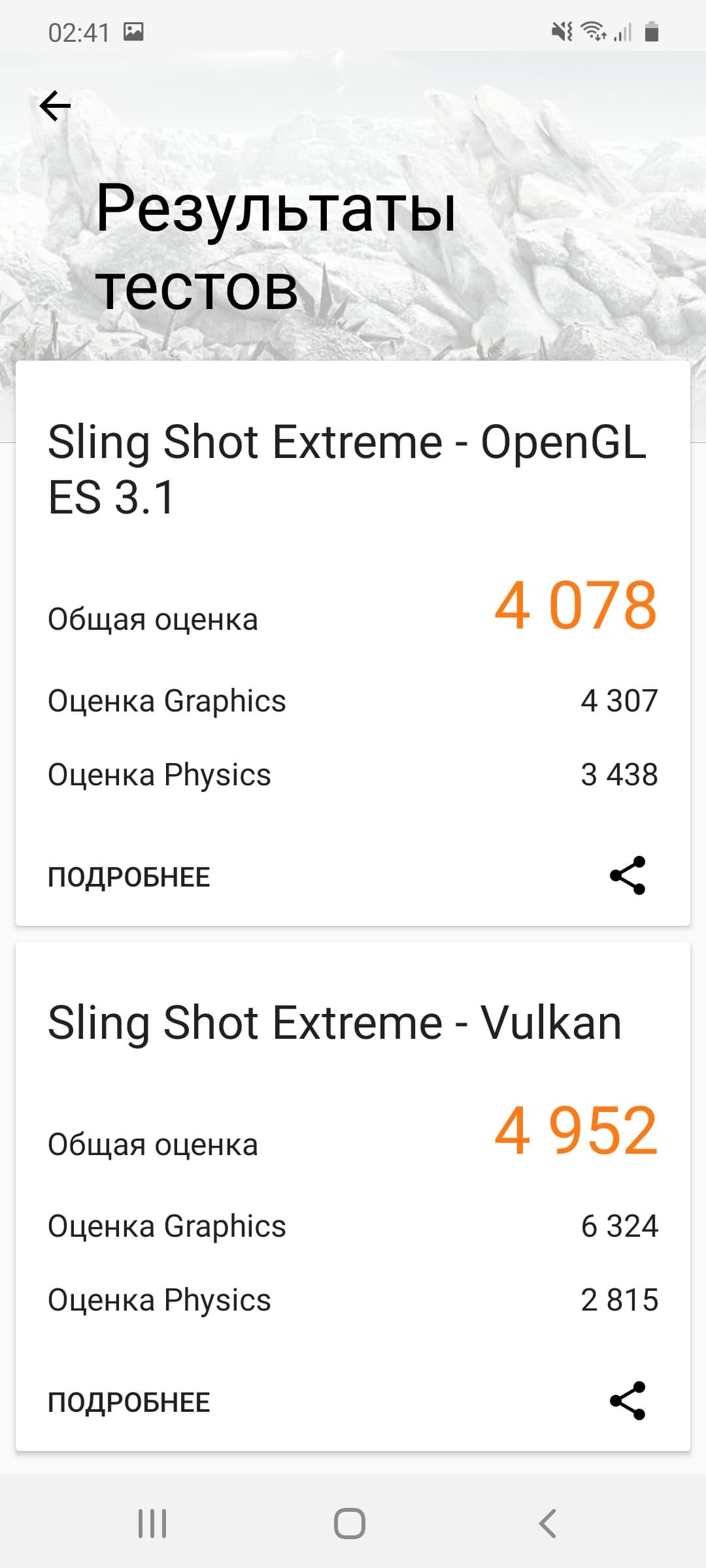 | 3DMark Sling Shot Ex Vulkan (больше — лучше) | 4952 | 4830 | 4903 | 4756 | 2763 |