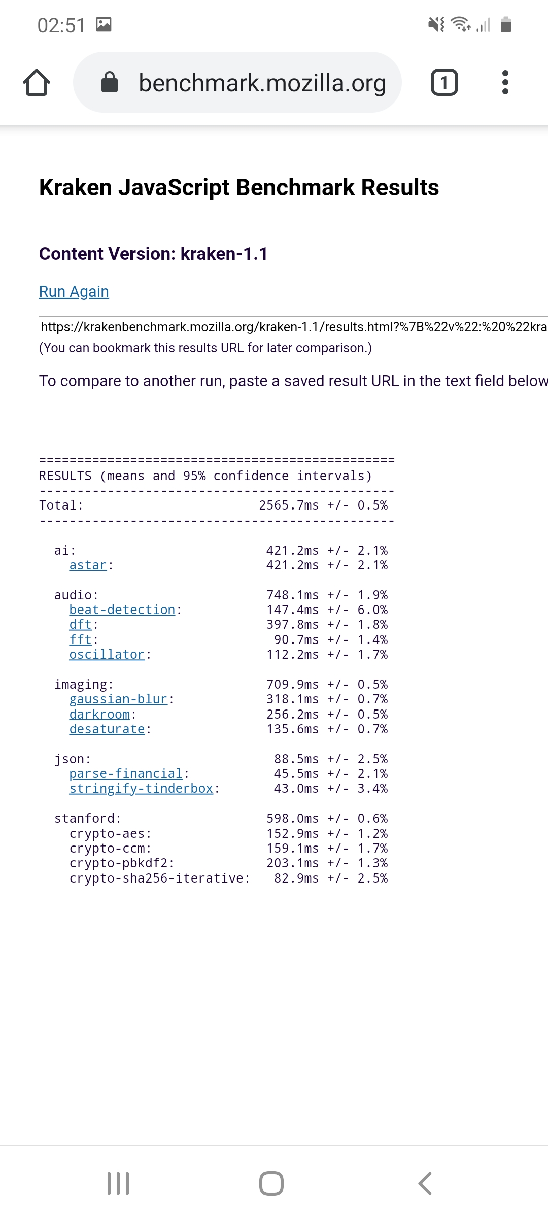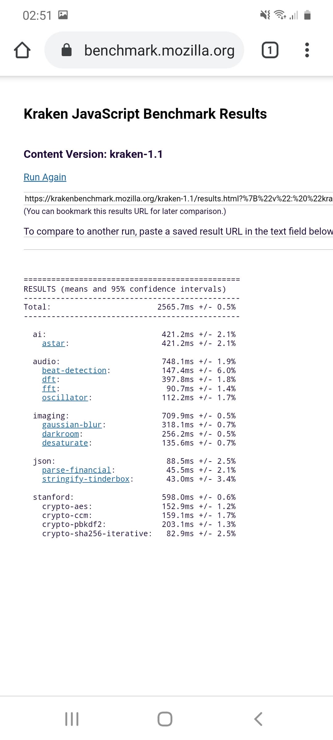 | Mozilla Kraken (мс, меньше — лучше) | 2566 | 2555 | 2109 | 4080 | 2267 |