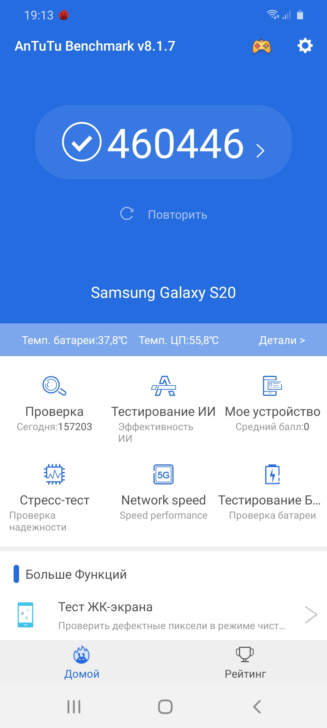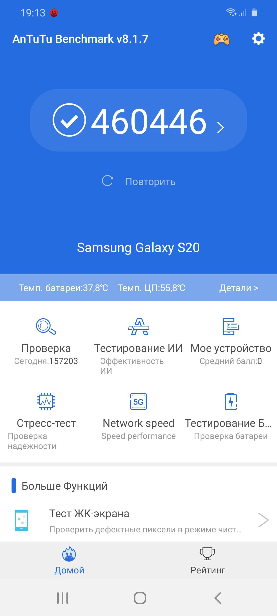 Exynos 990 — весьма производительная SoC, это практически максимальный уровень для мобильных платформ. Она справляется с любой задачей и с самыми требовательными играми, включая Modern Combat 3, Injustice 2 и PUBG при максимальном качестве графики, без малейших притормаживаний.