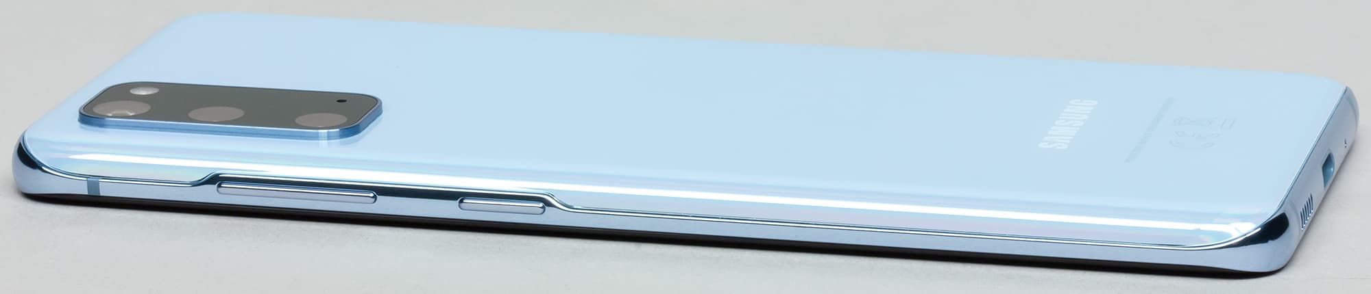 Задняя стенка выполнена из стекла, боковая рама — металлическая. В руках смартфон не скользит, хотя отпечатки на его стеклах, конечно, видны. В этом смысле практичнее светлый вариант, там отпечатки практически не заметны. В любом случае, Galaxy S20 — один из самых небольших и привлекательных смартфонов максимально топового уровня, и любителям небольших флагманов стоит обратить внимание именно на эту модель.