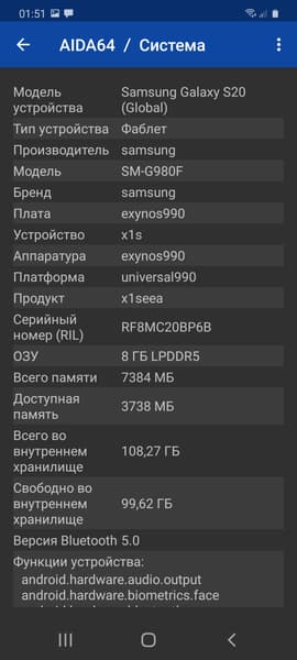Компания Samsung выпустила две версии смартфона, и европейская, которая побывала у нас на тестировании, работает на восьмиядерной однокристальной системе Exynos 990 (2×Mongoose M5 @2,73 ГГц + 2×Cortex-A76 @2,50 ГГц + 4×Cortex-A55 @2,0 ГГц), изготовленной по 7-нанометровому техпроцессу. Роль графического процессора выполняет GPU Mali-G77 MP11. Для рынка США и некоторых других предусмотрена модификация на основе SoC Qualcomm Snapdragon 865 c видеоадаптером Adreno 650.