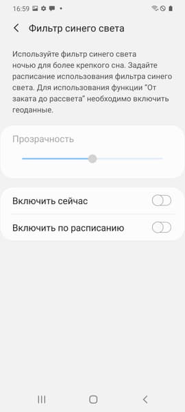 Есть модная функция Фильтр синего света, для которой в настройках даже приведено белее-менее корректное описание. Почему такая коррекция может быть полезной, рассказано в статье про iPad Pro 9,7 дюйма. В любом случае, при развлечении с планшетом или смартфоном на ночь глядя лучше снизить яркость экрана до минимального, но еще комфортного уровня. Желтить экран настройкой Фильтр синего света нет никакого смысла.