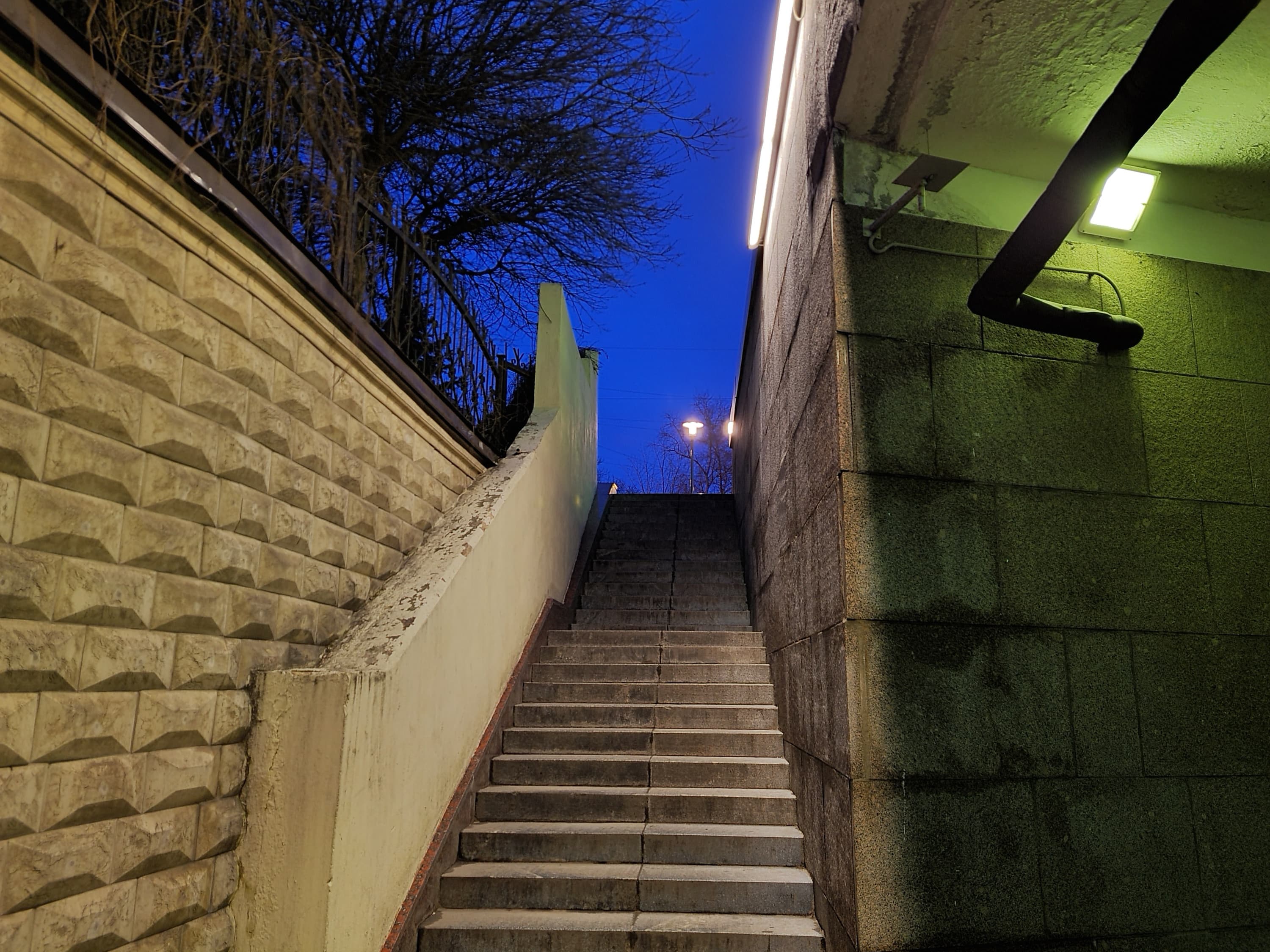 При съемке в 64-мегапиксельном режиме картинка при разглядывании в полный размер заметно хуже, чем у 12-мегапиксельных снимков на основной модуль. Здесь и от шумов никуда не деться даже в солнечный день, и резкость местами плывет, однако на краях кадра никакого ухудшения нет, а уж по детализации, с учетом такой разницы в разрешении, 64-мегапиксельные снимки гораздо предпочтительнее. Просто для них разумно выполнять небольшую обработку в фоторедакторе с попутным уменьшением снимка перед демонстрацией фотографий. В потемках качество снимков на этот модуль деградирует очень серьезно, а навязчивая обработка Samsung сильно ухудшает картинку, так что ночью в 64 Мп снимать, на наш взгляд, бесполезно.
