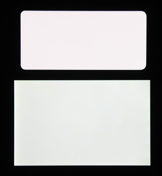 Отметим хорошую равномерность яркости и цветового тона белого поля (за исключением едва видимого затемнения и изменения оттенка к загнутым краям).