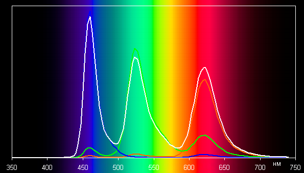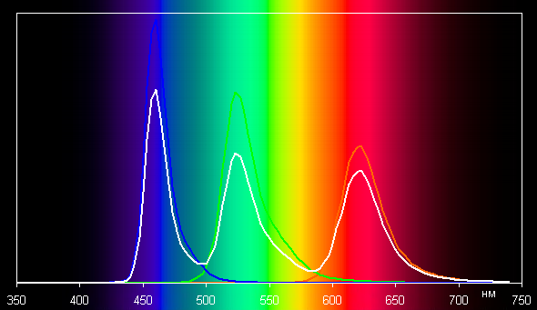 Без коррекции (профиль Насыщенные цвета) спектры компонент очень хорошо разделены: