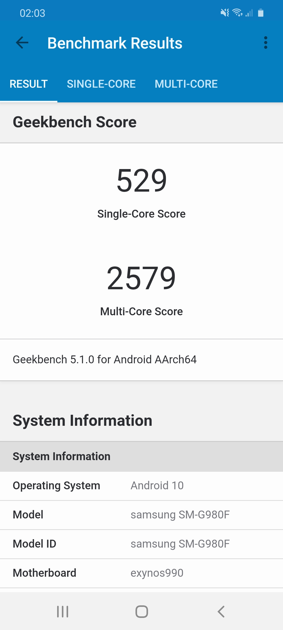 | Samsung Galaxy S20 (Samsung Exynos 990) | OnePlus 7T Pro (Qualcomm Snapdragon 855+) | Samsung Galaxy Fold (Qualcomm Snapdragon 855) | Samsung Galaxy Note10+ (Samsung Exynos 9825) | Huawei Mate 30 Pro (Huawei Kirin 990) | |