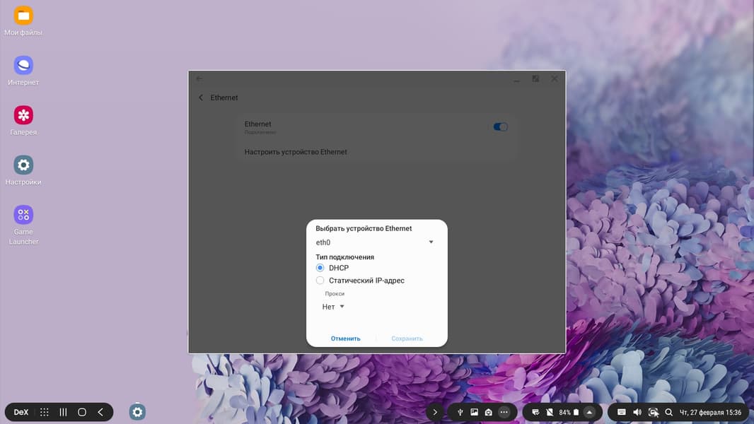 При подключении к нашему монитору вывод видео осуществляется в режиме 1080p при 60 Гц кадровой частоты. Режимов работы два: дублирование экрана смартфона (Screen Mirroring) и работа в режиме Samsung DeX — вывод альтернативного рабочего стола. Режим работы выбирает пользователь. В режиме Samsung DeX на экран монитора выводится изображение альтернативного рабочего стола, а экран смартфона может использоваться в качестве сенсорной панели координатного ввода или работать как обычно.