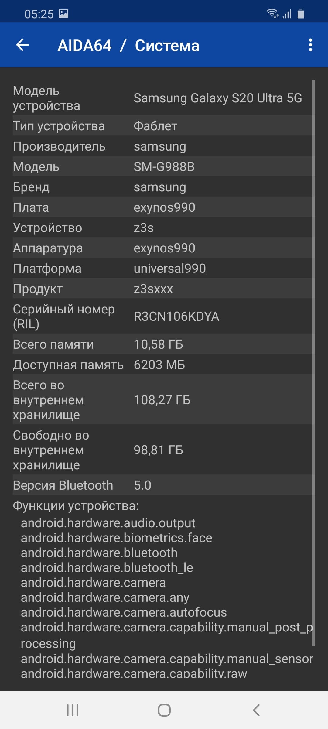 Основные характеристики Samsung Galaxy S20 Ultra 5G (модель SM-G988B)