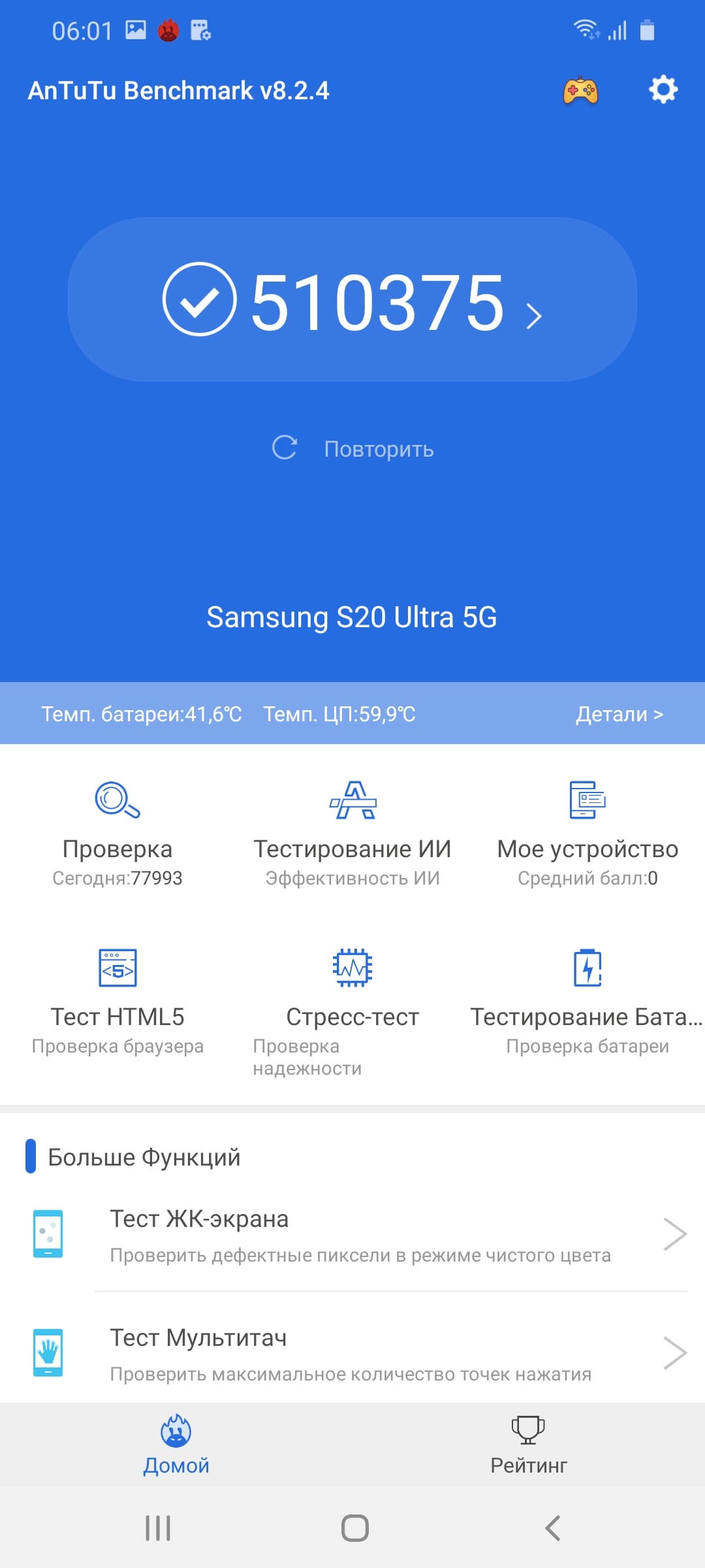 Тестирование в комплексных тестах AnTuTu и GeekBench: