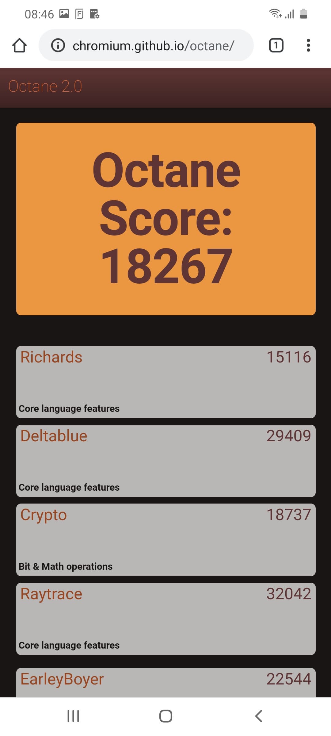 Что касается бенчмарков для оценки скорости движка javascript, то стоит всегда делать скидку на то, что в них результаты существенно зависят от браузера, в котором запускаются, так что сравнение может быть истинно корректным только на одинаковых ОС и браузерах, а такая возможность имеется при тестировании не всегда. В случае с ОС Android мы всегда стараемся использовать Google Chrome.