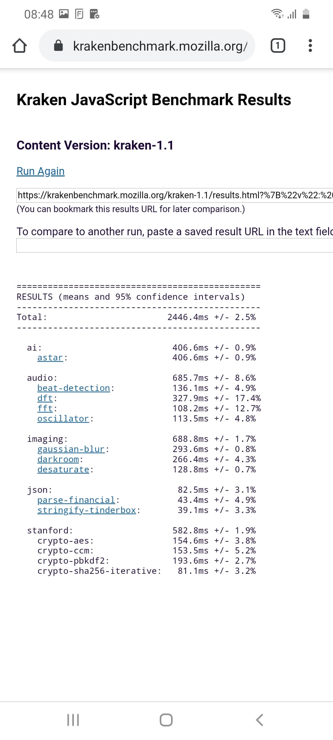 | Mozilla Kraken (мс, меньше — лучше) |