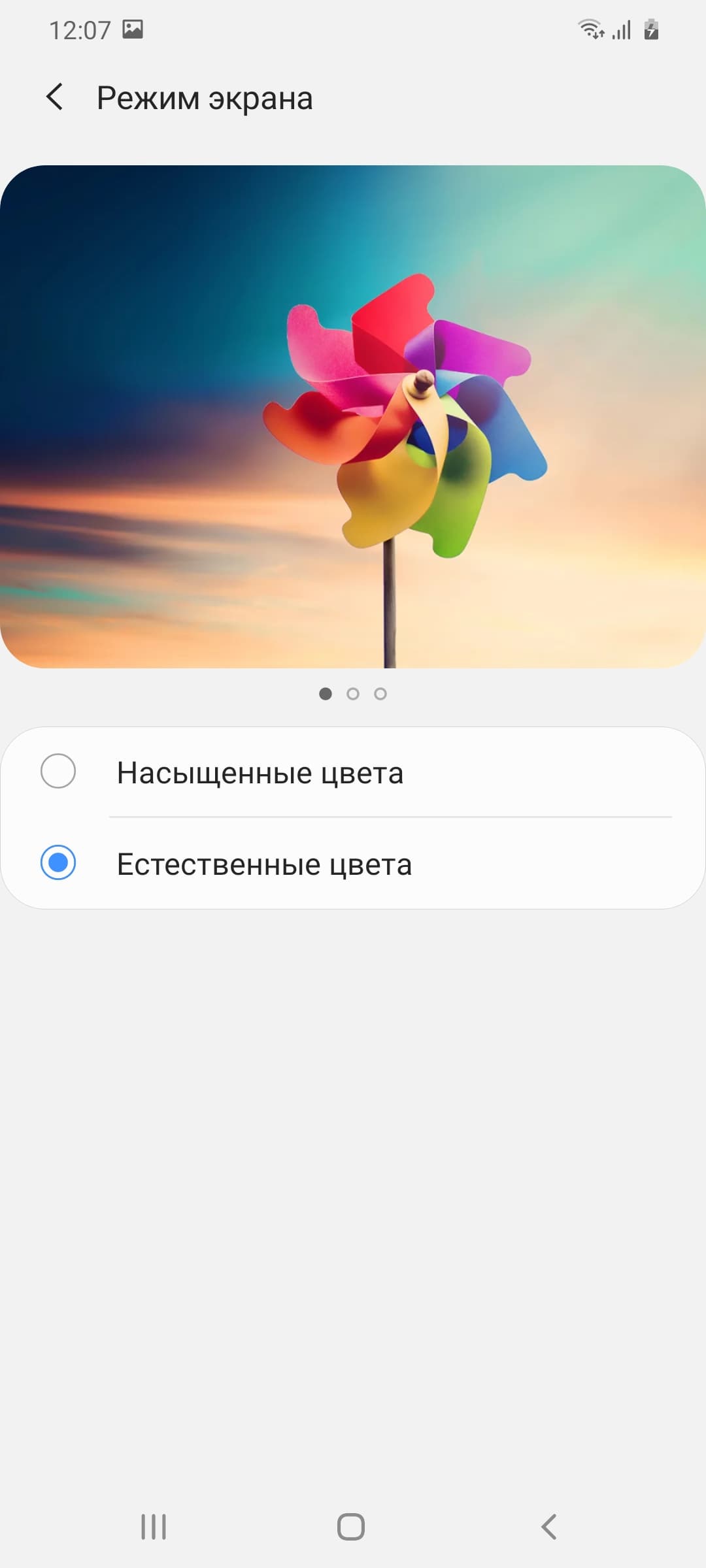 Фотография выше получена после выбора профиля Естественные цвета в настройках экрана, всего их два:
