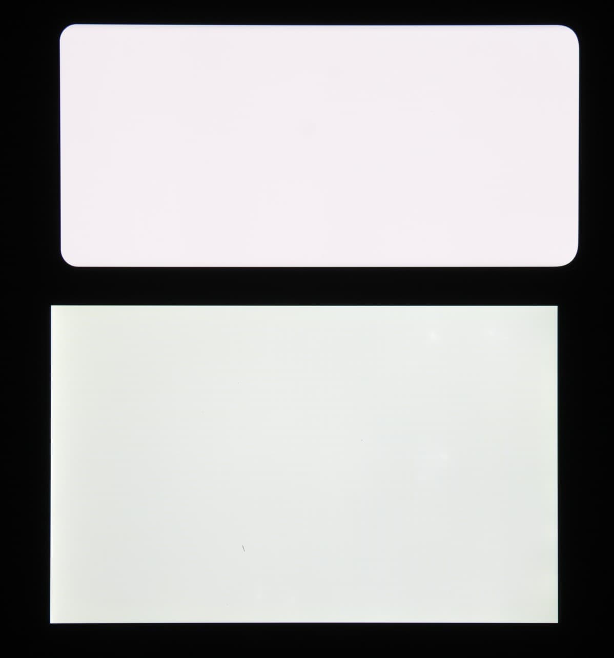 Экран характеризуется великолепными углами обзора. Правда, белый цвет при отклонении даже на небольшие углы приобретает поочередно легкий сине-зеленый или розоватый оттенок, но черный цвет остается просто черным под любыми углами. Он настолько черный, что параметр контрастности в данном случае неприменим. Для сравнения приведем фотографии, на которых на экраны Samsung Galaxy S20 Ultra 5G (профиль Насыщенные цвета) и второго участника сравнения выведены одинаковые изображения, при этом яркость экранов по белому полю изначально установлена примерно на 200 кд/м², а цветовой баланс на фотоаппарате принудительно переключен на 6500 К.