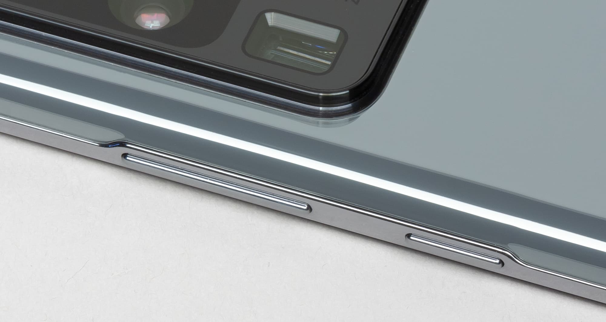 Экран у Samsung Galaxy S20 Ultra 5G заметно темнее (яркость по фотографиям 102 против 110 у Nexus 7) и не имеет выраженного оттенка. Двоение отраженных объектов в экране Samsung Galaxy S20 Ultra 5G очень слабое, это свидетельствует о том, что между слоями экрана нет воздушного промежутка. За счет меньшего числа границ (типа стекло/воздух) с сильно различающимися коэффициентами преломления экраны без воздушного промежутка лучше смотрятся в условиях интенсивной внешней засветки, но вот их ремонт в случае потрескавшегося внешнего стекла обходится гораздо дороже, так как менять приходится экран целиком. На внешней поверхности экрана Samsung Galaxy S20 Ultra 5G есть специальное олеофобное (жироотталкивающее) покрытие (очень эффективное, гораздо лучше, чем у Nexus 7), поэтому следы от пальцев удаляются существенно легче, а появляются с меньшей скоростью, чем в случае обычного стекла.