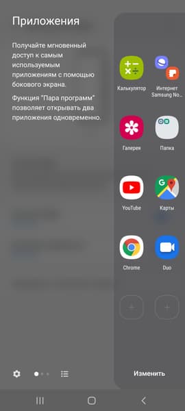 В качестве программной платформы используется ОС Android 10-й версии с оболочкой One UI 2.0. Оболочка совсем свежая, мы уже встречали ее, например, в Samsung Galaxy S10 Lite. Есть поддержка жестов, работа одной рукой, многозадачность. Можно настраивать вручную весьма богатую функциональность Always On Display, менять частоту обновления экрана и его чувствительность к прикосновениям, запускать игры в игровом режиме, а также углубиться в куда более тонкие настройки, вроде уменьшения интенсивности анимаций. Не всем такое богатство самостоятельной настройки нужно, но здесь можно найти практически все. Имеется даже выдвижная панель Edge, несмотря на то, что экран плоский. Есть пресловутая темная тема, изменяющая оформление всей системы вплоть до шторки уведомлений. Также в шторке уведомлений можно менять форму значков. Возможности самостоятельной настройки и оформления интерфейса в последней версии уделили еще больше внимания. При получении уведомлений по сильно загнутым краям дисплея пробегают две светящиеся полоски, цвет которых можно выбирать вручную.