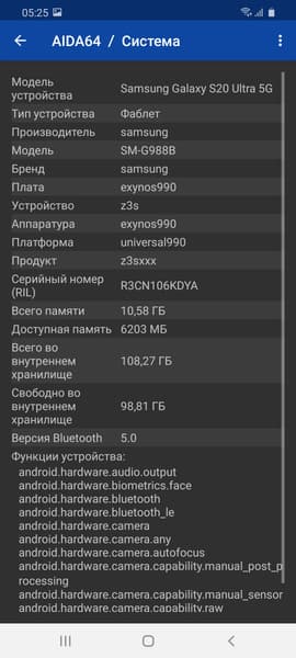 Как обычно, Samsung выпустила две версии смартфона, и европейская, которая побывала у нас на тестировании, работает на восьмиядерной однокристальной системе Exynos 990 (2×Mongoose M5 @2,73 ГГц + 2×Cortex-A76 @2,50 ГГц + 4×Cortex-A55 @2,0 ГГц), изготовленной по 7-нанометровому техпроцессу. Роль графического процессора выполняет GPU Mali-G77 MP11. Для рынка США и некоторых других предусмотрена иная модификация с аппаратной начинкой в виде SoC Qualcomm Snapdragon 865 c видеоадаптером Adreno 650.