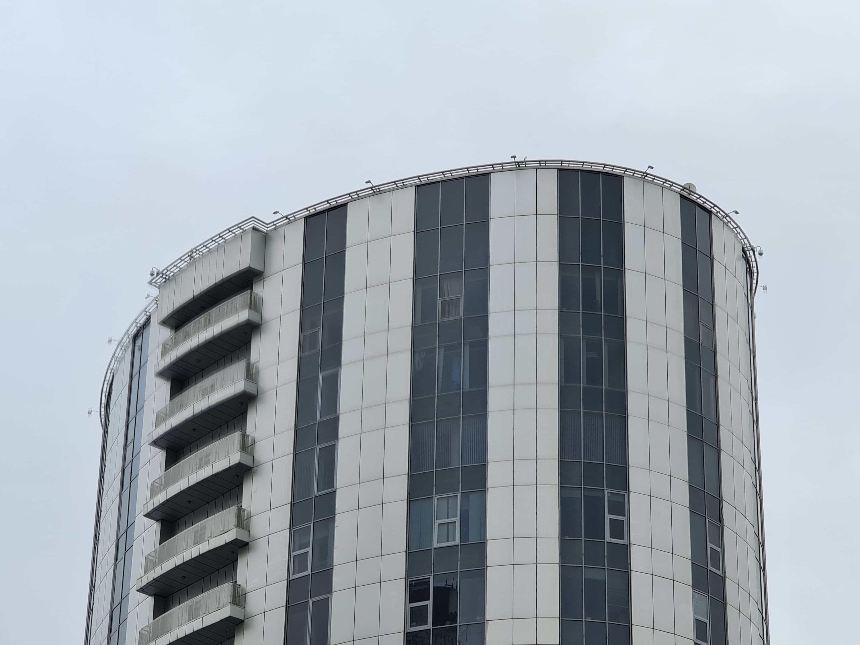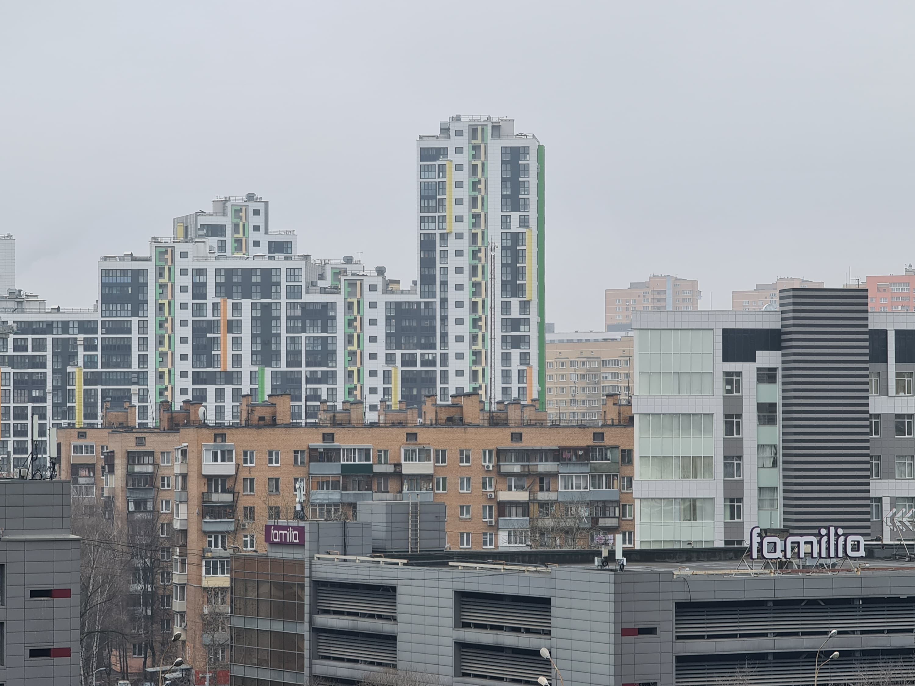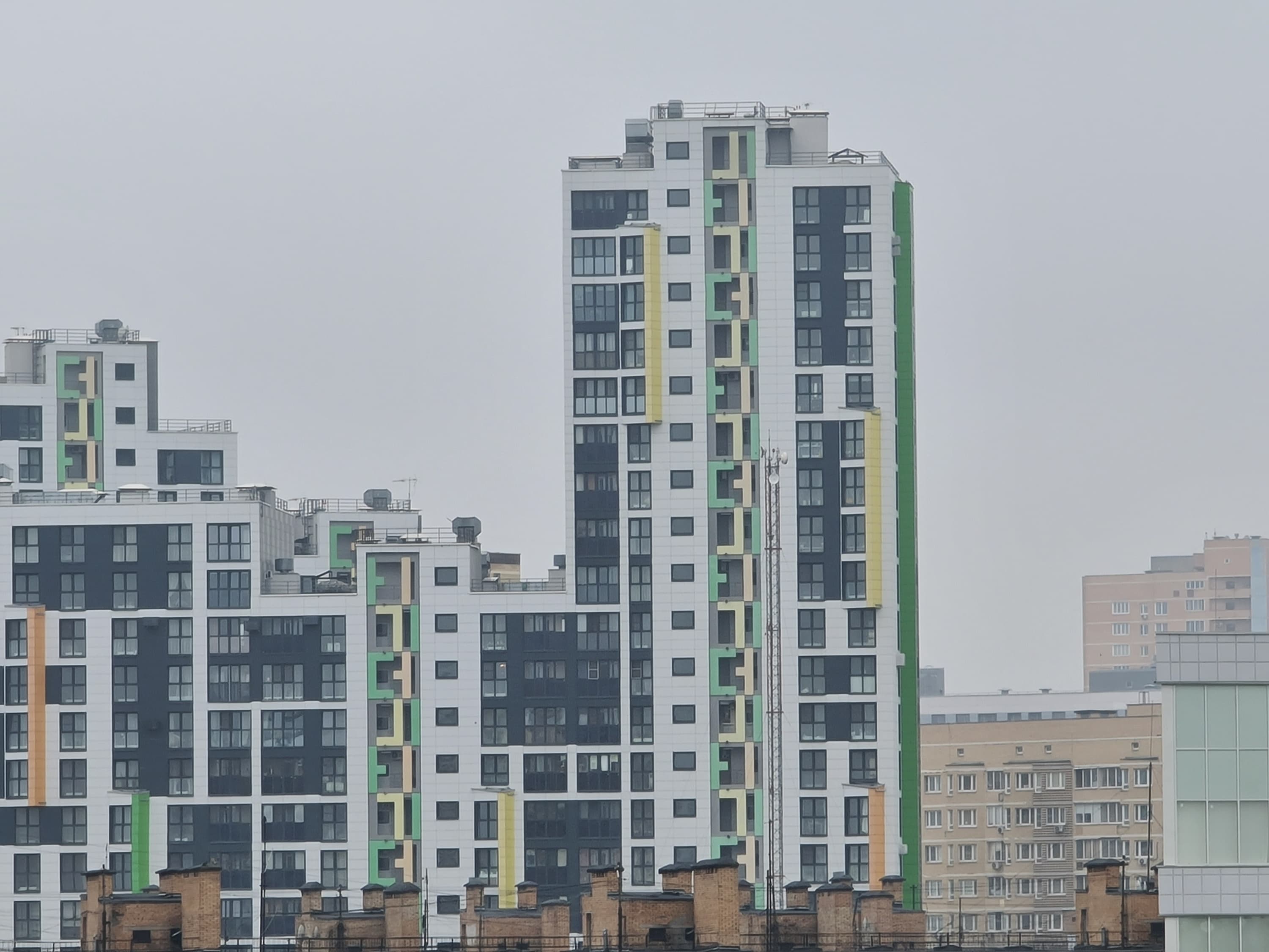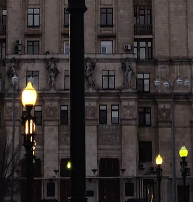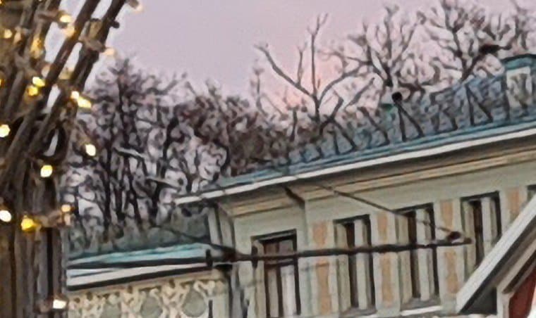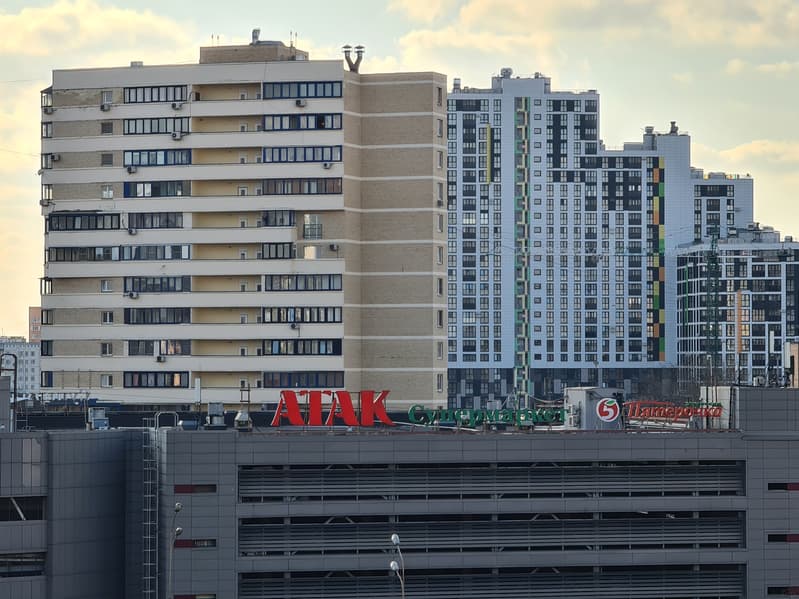 Тогда главный вопрос: если все это настолько хорошо видно и понятно, то зачем производители так делают, почему не ограничиваются ресайзом? Дело, как ни банально, в том, что производитель не стремится к довольно абстрактной цели получить фотографии с высокой детализацией. Перед ним стоит задача получить фотографии, которые смотрятся лучше. А где их смотрят? В большинстве случаев — на экране самого смартфона. И даже если на мониторе/телевизоре, то в большинстве случаев — в уменьшенном размере. И в этих случаях именно «интеллектуально улучшенный» снимок выглядит лучше: сравните, например, насколько отчетливее видны ветви деревьев на фоне неба на общем плане и насколько сильнее выражена пятнистость облицовки здания при рассматривании в полный размер. (Для упрощения мы прикладываем два снимка: исходно 12 Мп и 108→12 Мп; второй получен из 108 Мп обычным ресайзом в Photoshop с небольшим осветлением.) Ну да, это «нечестные» детали — но пользователю-то нужна «красота», а не «честность». Впрочем, это подход конкретно Samsung, и он экстремальный в том смысле, что так сильно снимки никто больше не модифицирует. При таком походе страдают самые тонкие линии, и если рассматривать в полный размер, например, мелкие надписи, то они почти всегда выглядят после подобной обработки хуже. Что же делать в таких ситуациях? Как оценивать и сравнивать снимки с разных смартфонов? Мы продолжим поступать так же, как поступали раньше: будем честно информировать вас о том, есть ли выигрыш в детализации у «более мегапиксельных» фотографий и имеет ли смысл, на наш взгляд, снимать в полном разрешении сенсора. А вы имеете полную возможность сравнить снимки самостоятельно и самостоятельно же прийти к своим собственным выводам о том, что́ вам нравится больше.