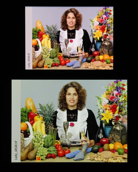 Отметим, что на экранах с широким цветовым охватом (без соответствующей коррекции) цвета́ обычных изображений, оптимизированных для устройств sRGB, выглядят неестественно насыщенными. Отсюда и рекомендация: в большинстве случаев смотреть кино, фотографии и все естественное лучше при выборе профиля Естественные цвета, и только если фотография или видеоматериал сделаны с охватом DCI, принятым в цифровом кинематографе, имеет смысл переключить профиль на Насыщенные цвета.