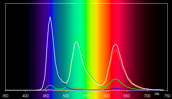 Без коррекции (профиль Насыщенные цвета) спектры компонент очень хорошо разделены: