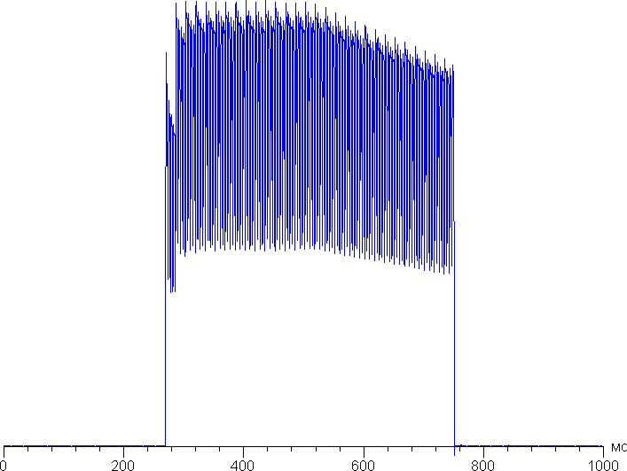 Переключение состояния элементов матрицы выполняется практически мгновенно, но на фронте включения может присутствовать ступенька шириной примерно 17 мс (в режиме с частотой обновления экрана 60 Гц). Например, так выглядит зависимость яркости от времени при переходе от черного к белому и обратно: