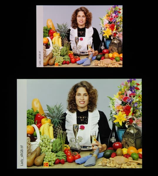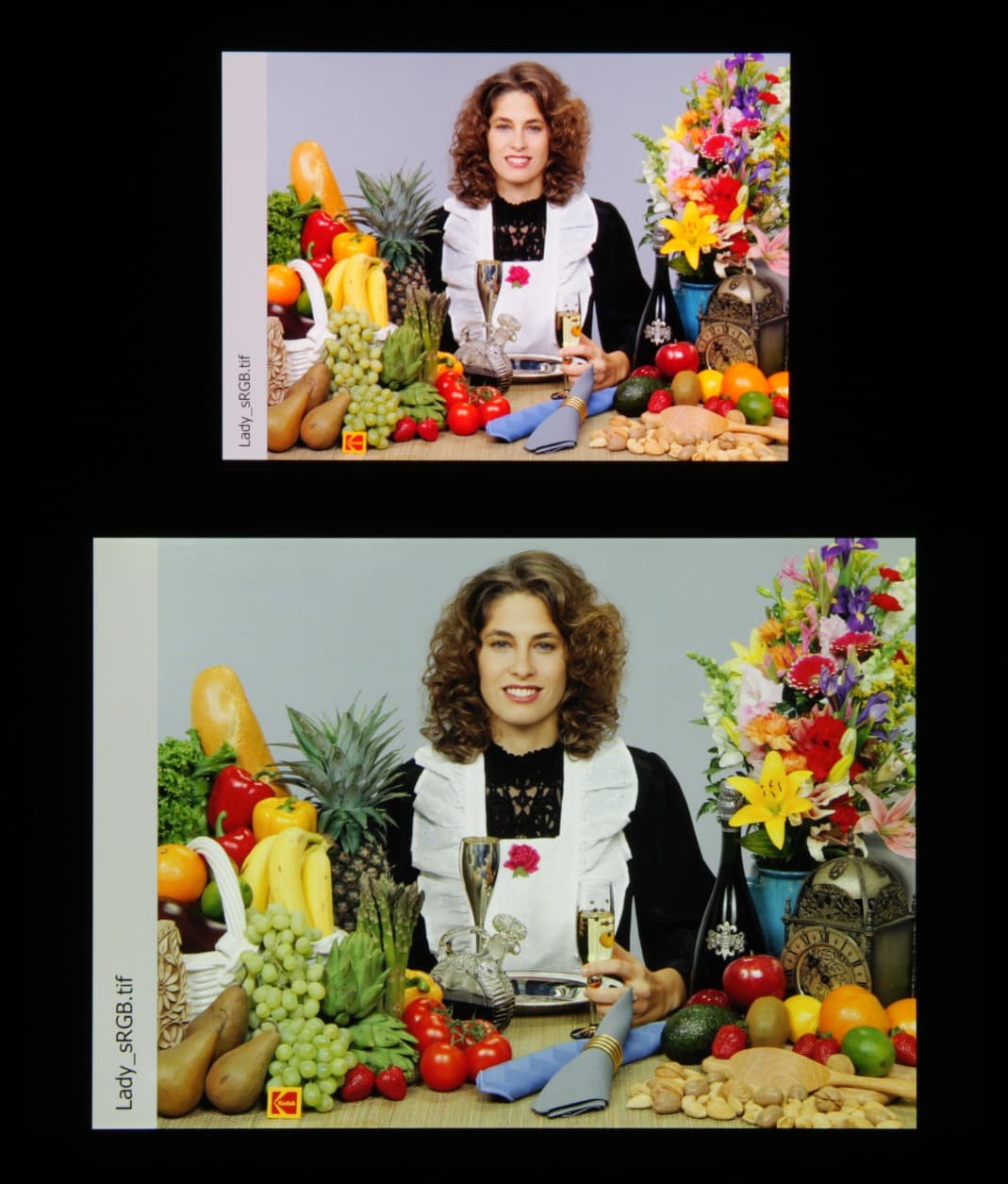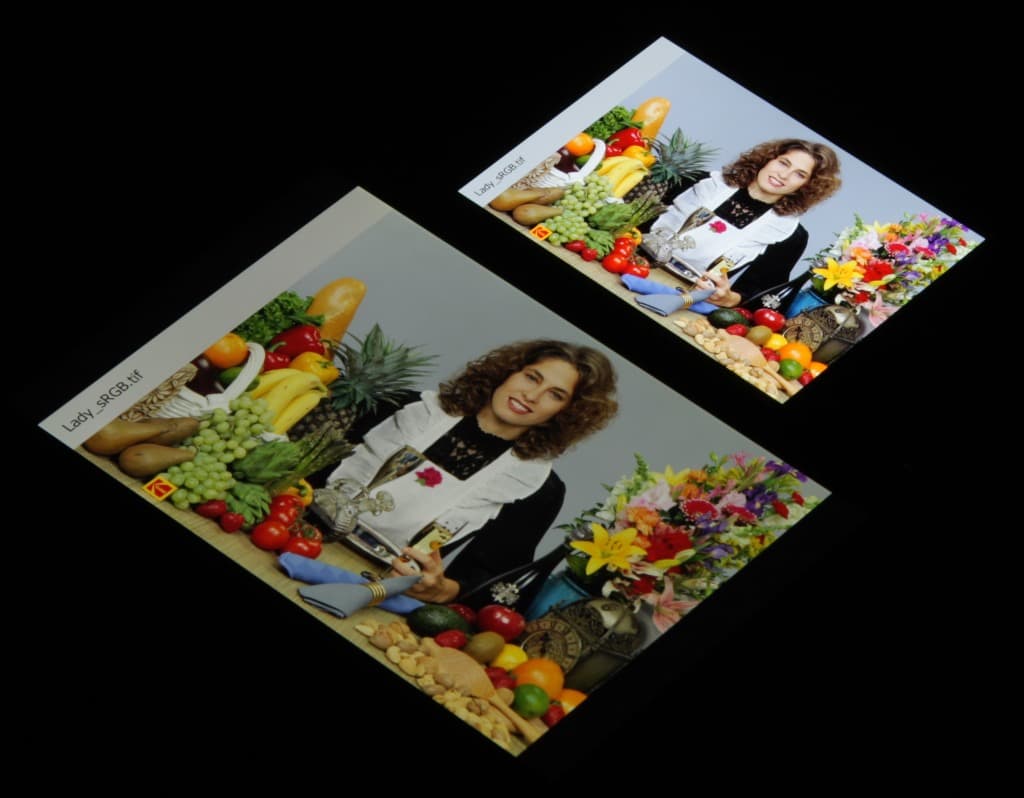 Отметим, что на экранах с широким цветовым охватом (без соответствующей коррекции) цвета́ обычных изображений, оптимизированных для устройств sRGB, выглядят неестественно насыщенными. Отсюда и рекомендация: в большинстве случаев смотреть кино, фотографии и все естественное лучше при выборе профиля Естественные цвета, и только если фотография или видеоматериал сделаны с охватом DCI, принятым в цифровом кинематографе, то имеет смысл переключить профиль на Насыщенные цвета.