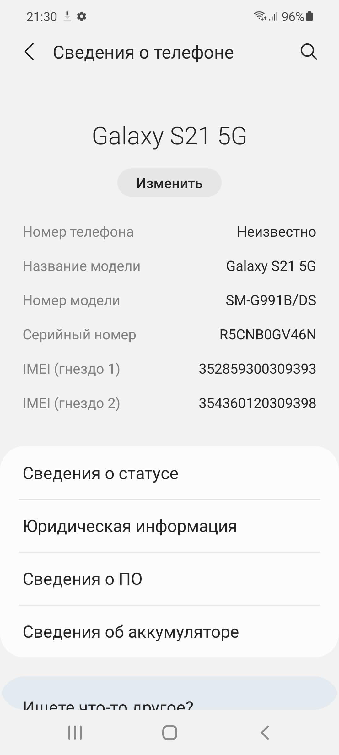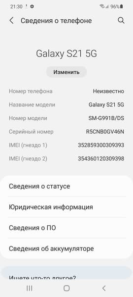 | Samsung Galaxy S21 5G (Exynos, 8/128 ГБ) | |