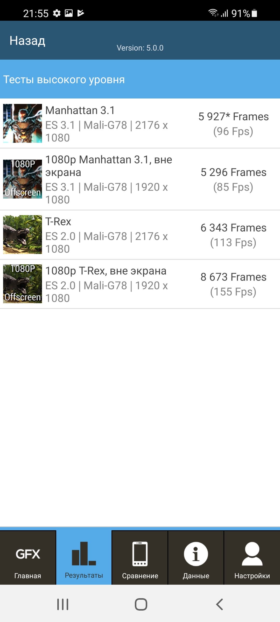 | GFXBenchmark Manhattan ES 3.1 (Onscreen, fps) | 96 | 80 | 86 | 81 | 54 |