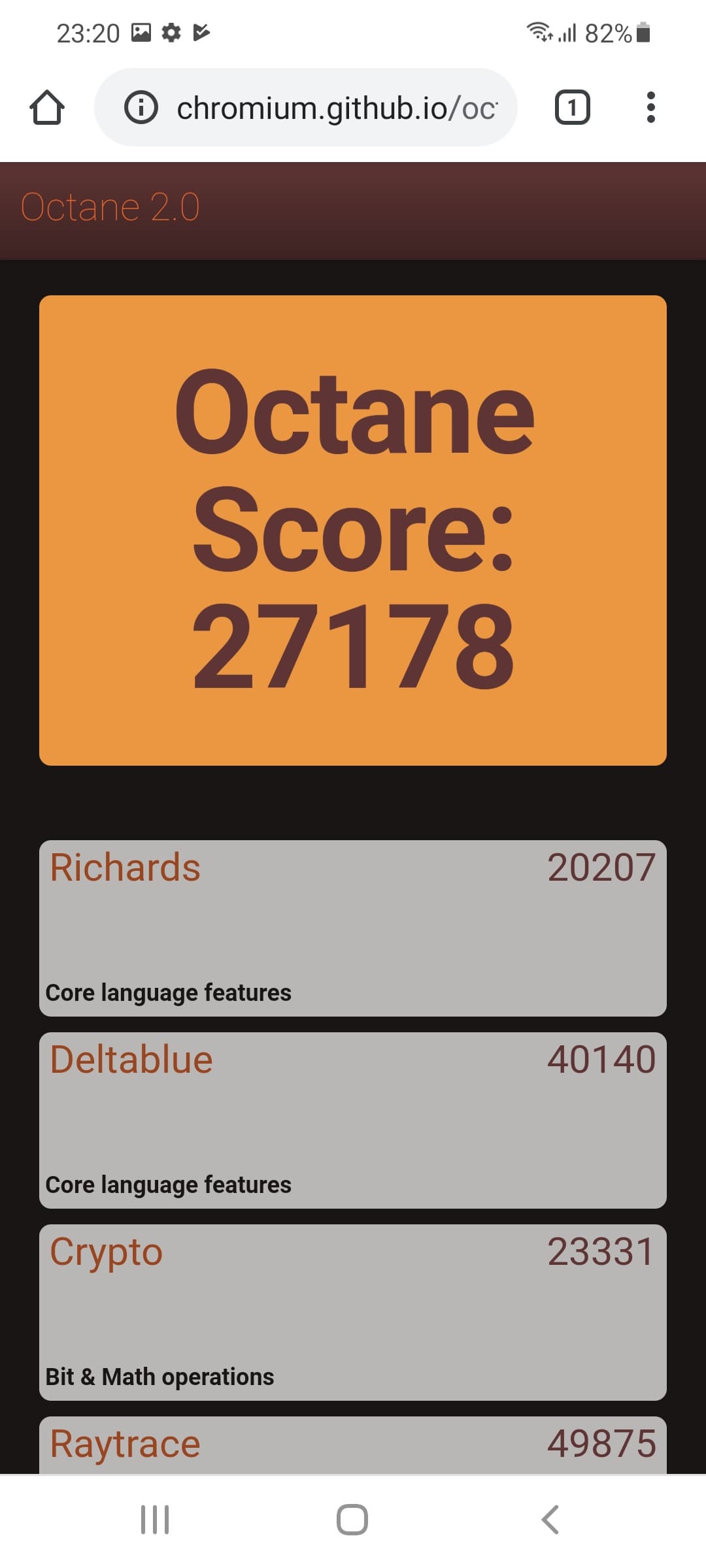 | Google Octane 2 (больше — лучше) | 27178 | 19876 | 25832 | 26144 | 21754 |